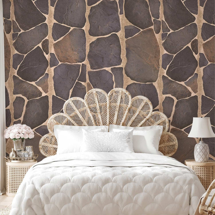 Tapetes ar akmens rakstu brūnos toņos - Ala, 89147