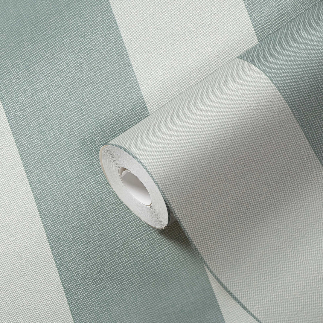 Flizelīna tapetes ar svītrām un tekstīla faktūru - zaļā krāsā - 1411127