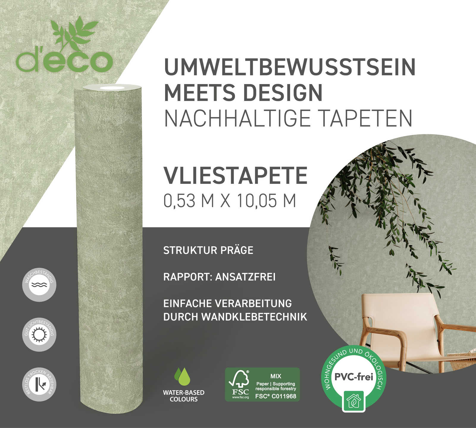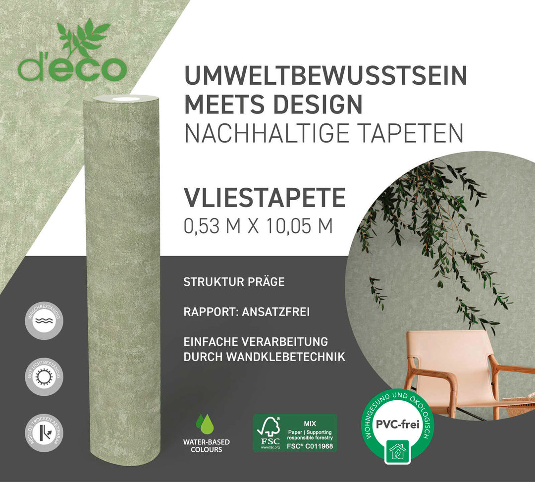 Ekoloģiskas tapetes bez PVC ar teksturētu izskatu: gaiši zaļā, 1362530, 🔖