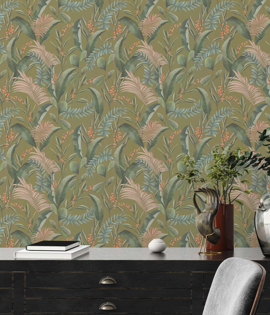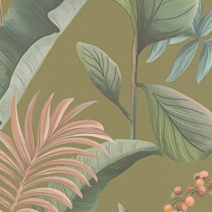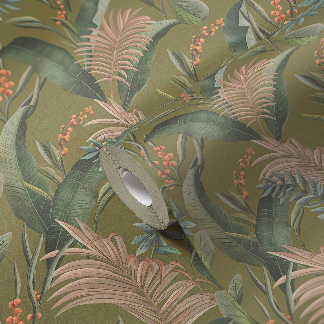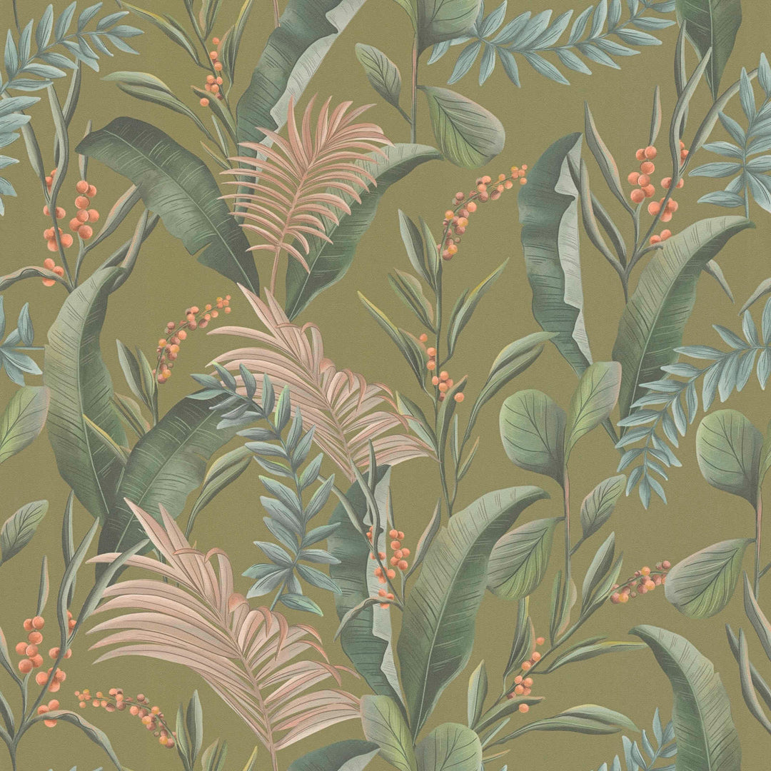 Tapetes ar eksotiskam lapām, matētas: zaļā krāsā, 1402173
