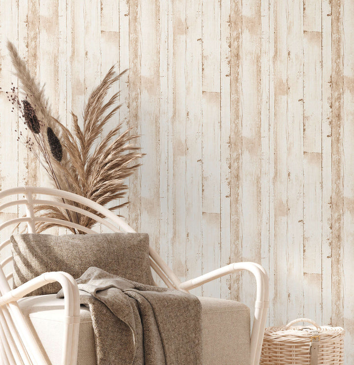 Tapetes ar koka dēļu izskatu, nesatur PVC - bēšā krāsā, 1357775 🌱