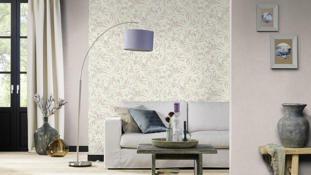 Tapetes ar tropiskām lapām uz tekstila faktūras, RASCH, 1205100