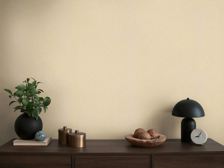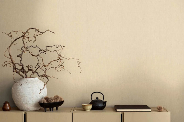 Vienkrāsainas flizelīna tapetes ar auduma izskatu, bēšos toņos - 1414777