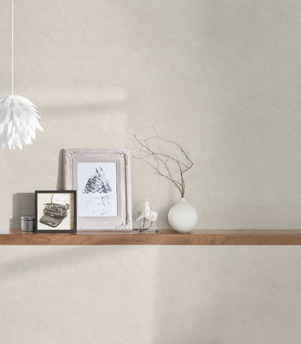 Vienkrāsainas tapetes ar tekstila izskatu - bēšas, 1404607