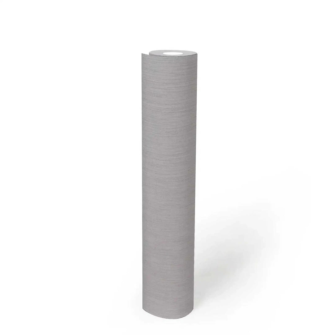 Daniel Hechter pelēkas matētas tapetes ar vieglu faktūru piešķir telpai mierīgu un izsmalcinātu noskaņu.