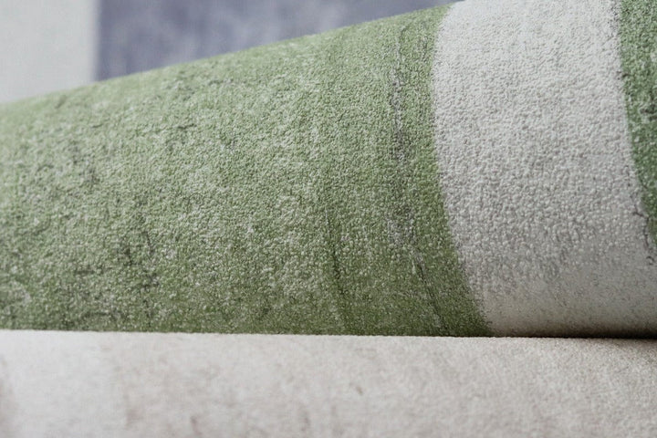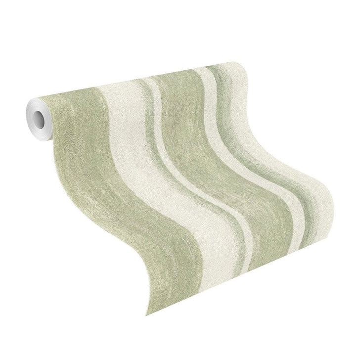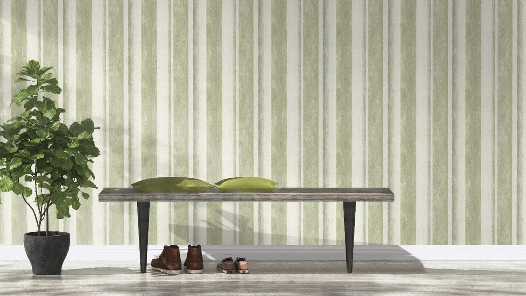 Šīs blokveida svītras kaļķīgi baltā un gaiši patina zaļā krāsā sola lielu dažādību skatītājam, neiedziļinoties priekšplānā. Ar dažādu platumu, vienmērīgām pārejām un smalku apmetuma faktūru tās ir ideāls papildinājums jūsu mēbelēm un aksesuāriem.
