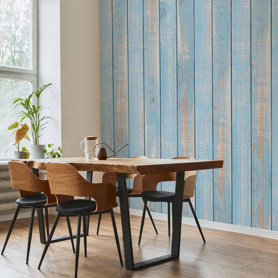 Tapetes ar koka dēļiem zilos toņos, 89177