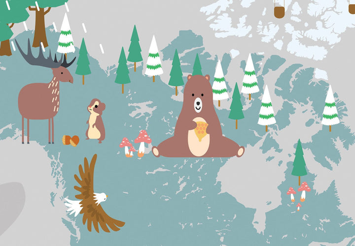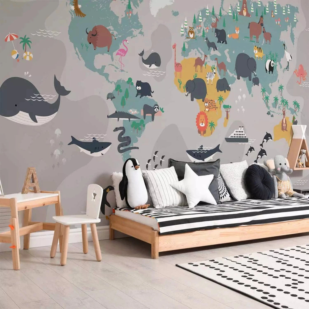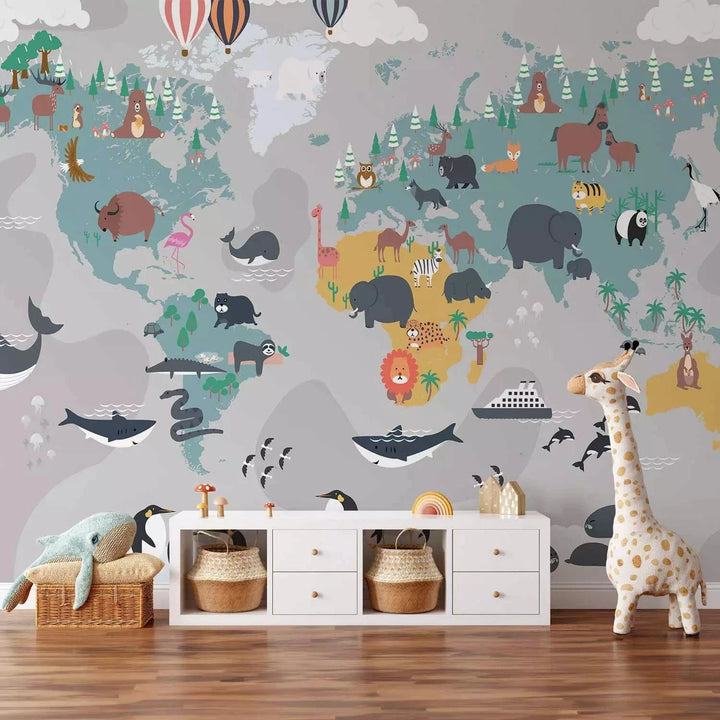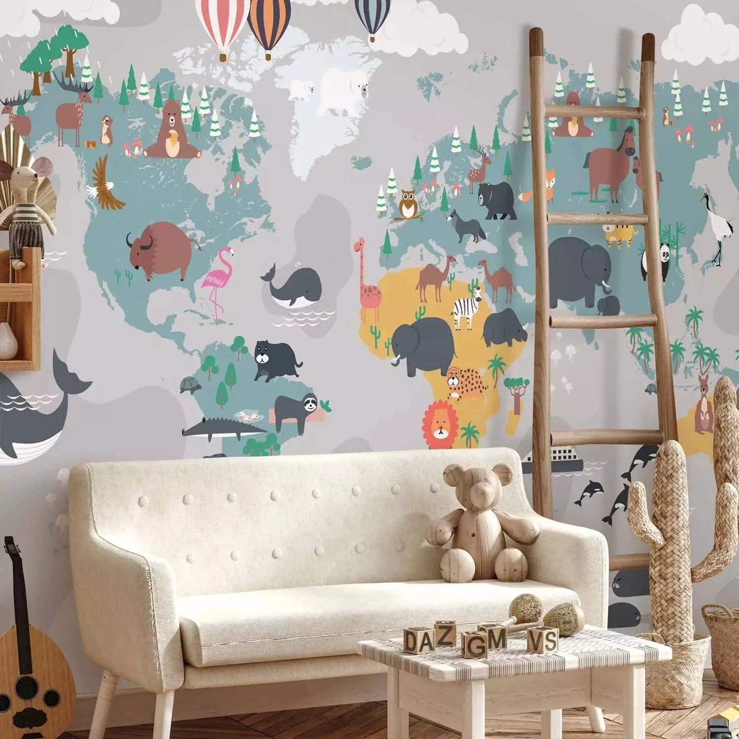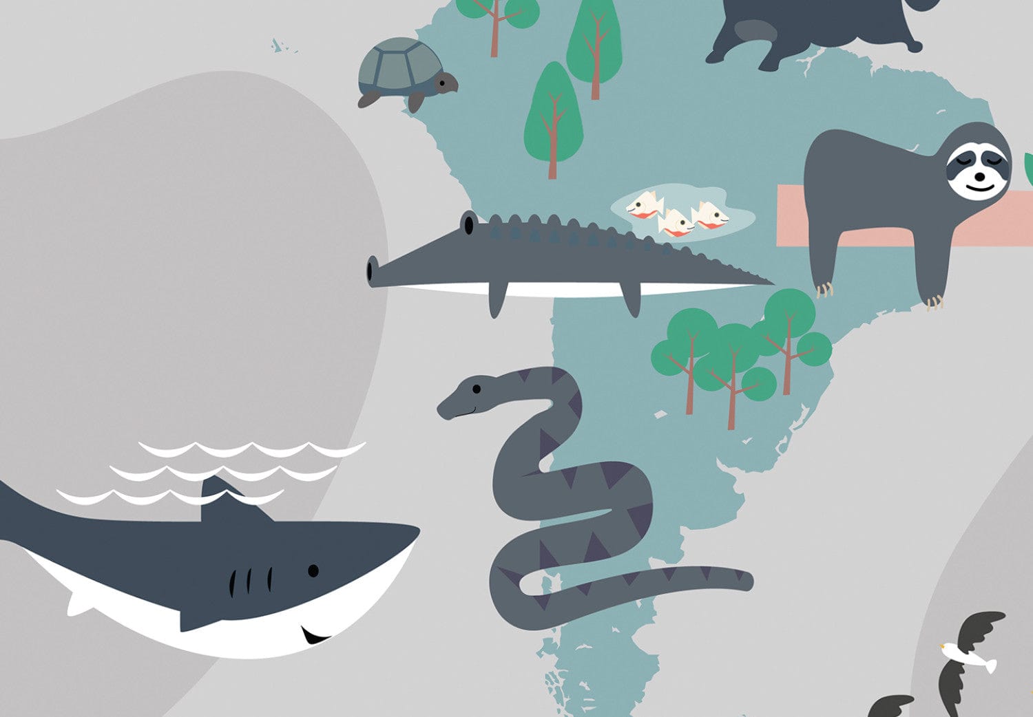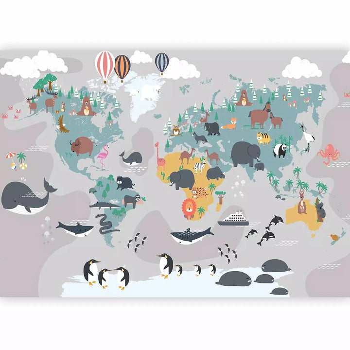 Fototapetes bērniem - Ilustrācijas par dzīvnieku un augiem kontinentos, 149213
