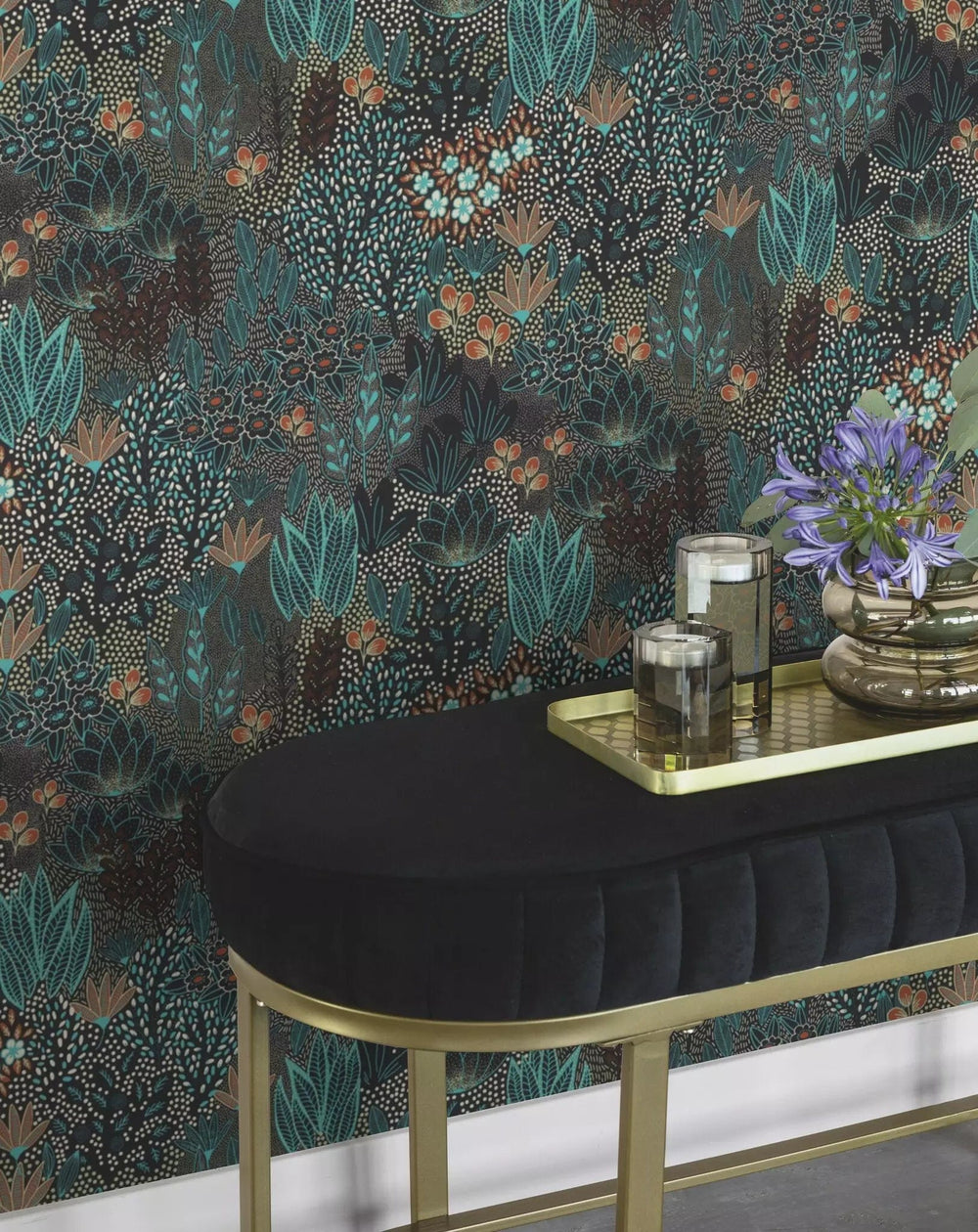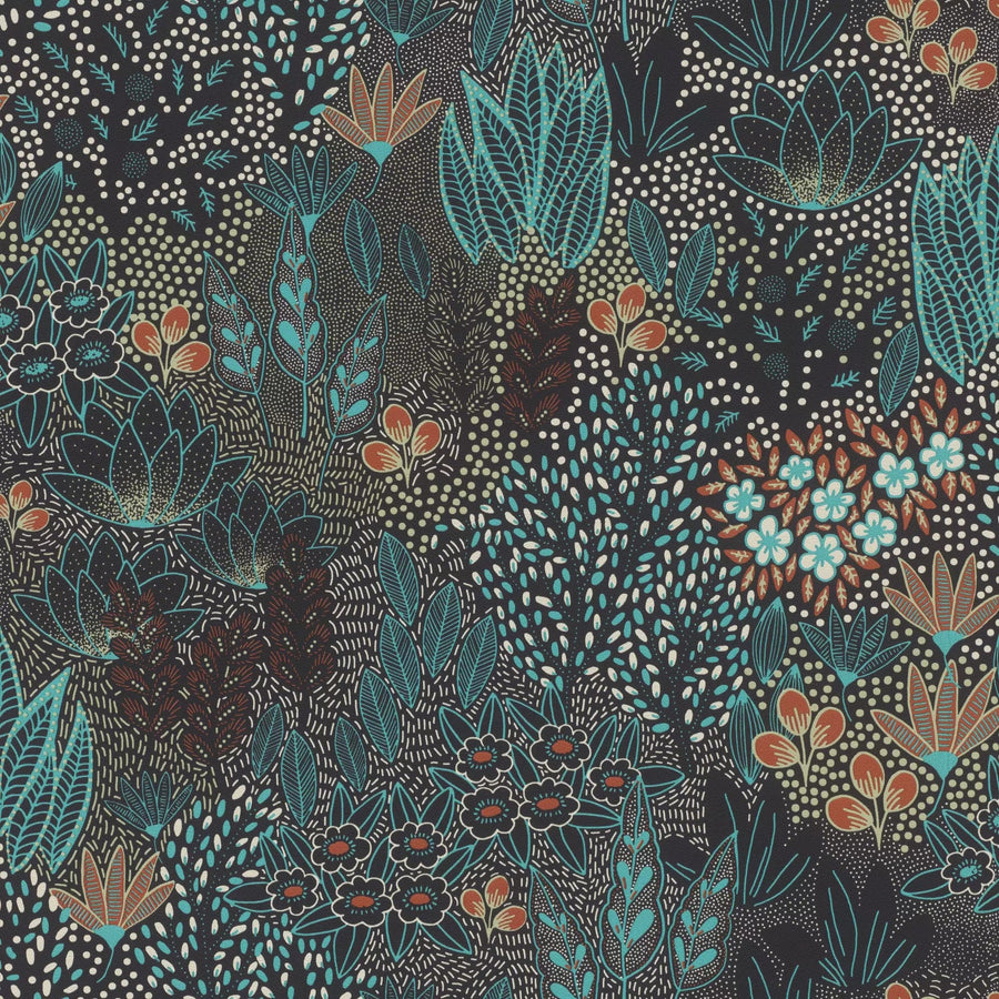 Tapetes ar ziediem un lapām: tirkīza, zaļa, melna, RASCH, 2033174