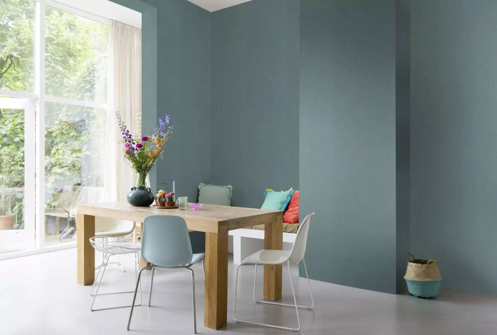 Vienkrāsainas tapetes ar tekstila faktūru tirkīzā krāsā, 2324540