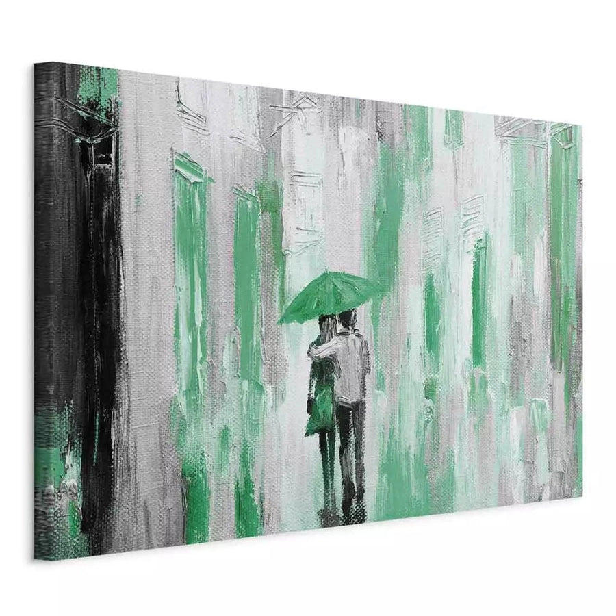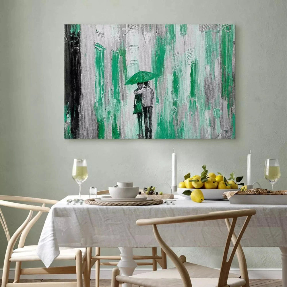 Kanva - romantiska tematika - pāris pastaigājas lietū - zaļā krāsā G-ART
