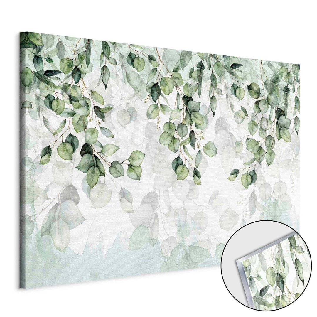 Glezna uz akrila stikla - Zaļas lapas uz balta fona - akvareļu tehnikā, 151511