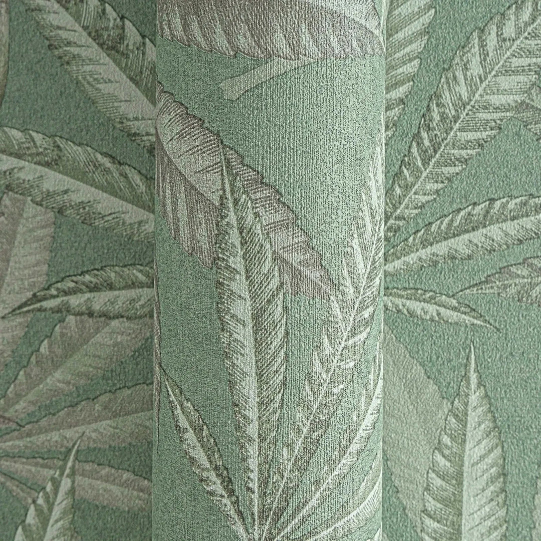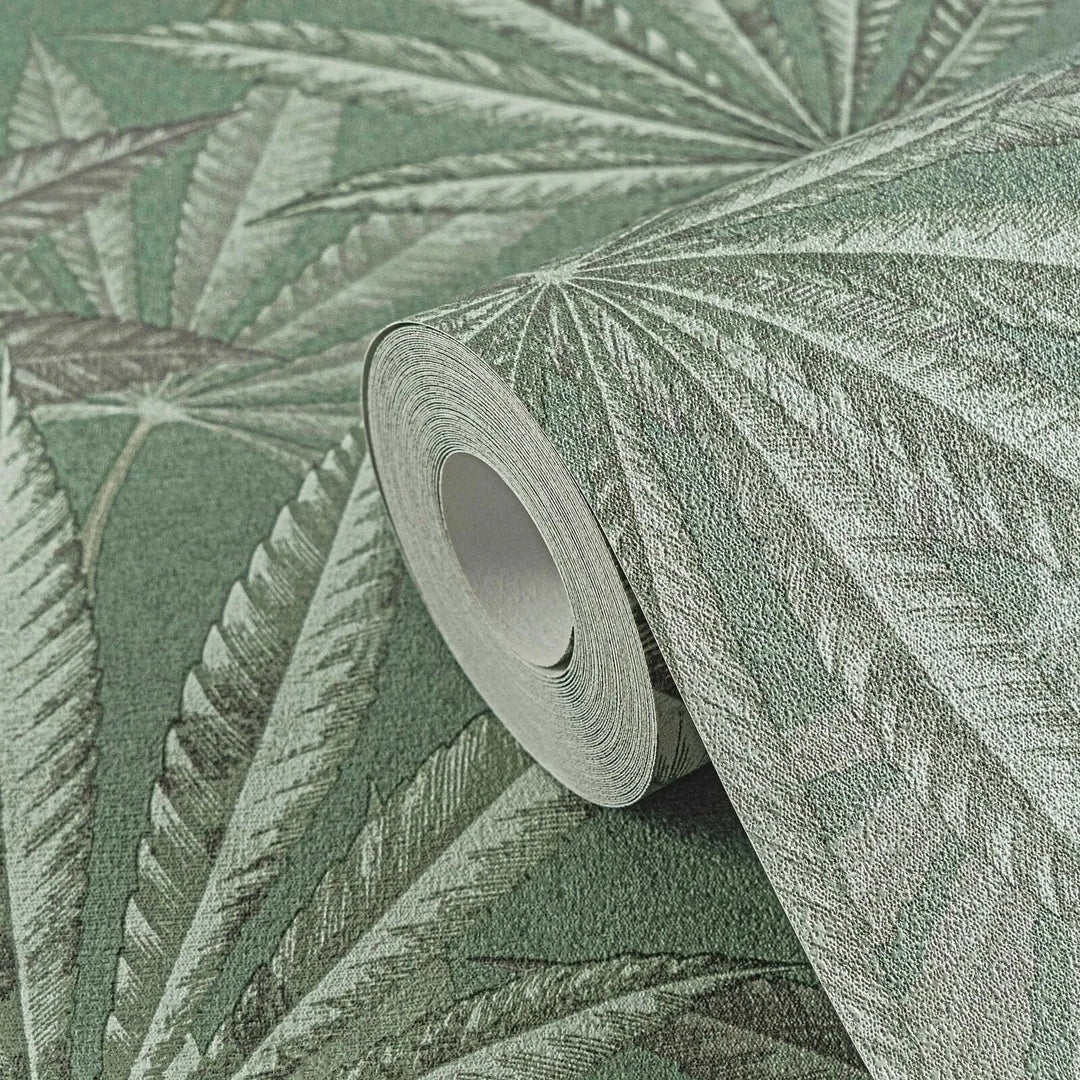 Flizelīna tapetes ar lapu rakstu džungļu stilā - zaļas - 1414741