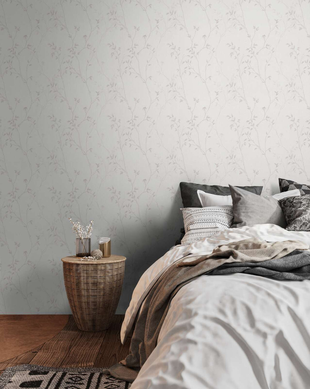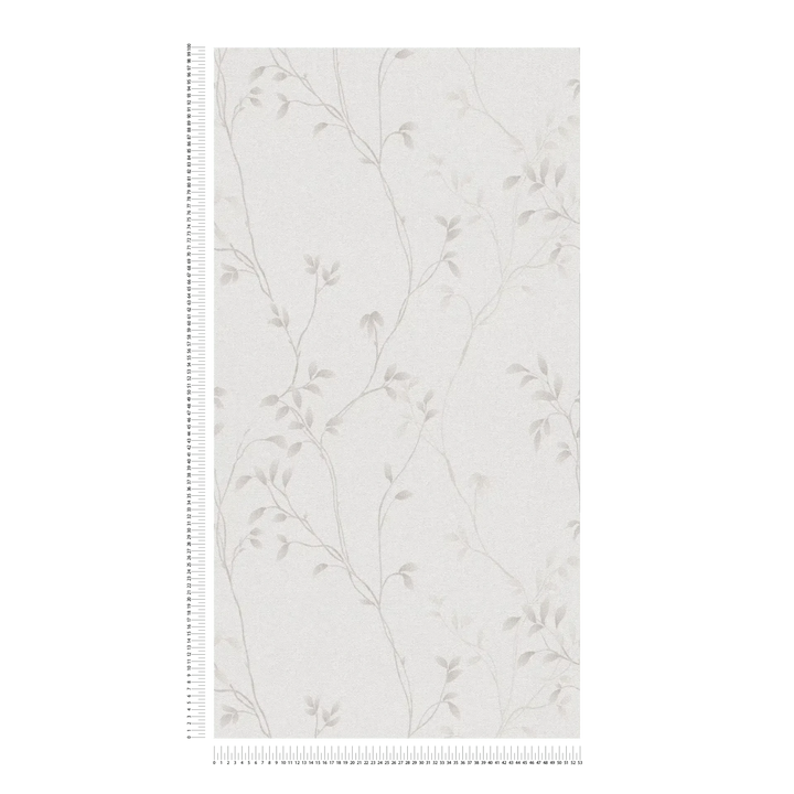 Flizelīna tapetes – Smalkie zariņi ar lapām uz auduma tekstūras – augstas kvalitātes flizelīna tapetes ar izmēru 0,53x10 m. Krāsa un apdare: Krēmkrāsā. Ideāli piemērotas eleganta un modernā interjera izveidei.