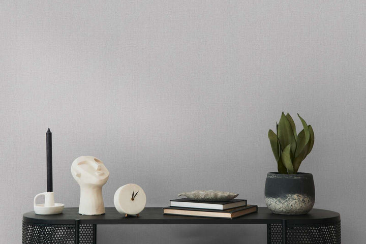 Flizelīna tapetes ar tekstila faktūru pelēkos toņos (1306426), izmērs 0,53x10 m. Neausts materiāls, nedaudz teksturēta un matēta virsma – stilīgs un neitrāls fons jebkurai telpai.