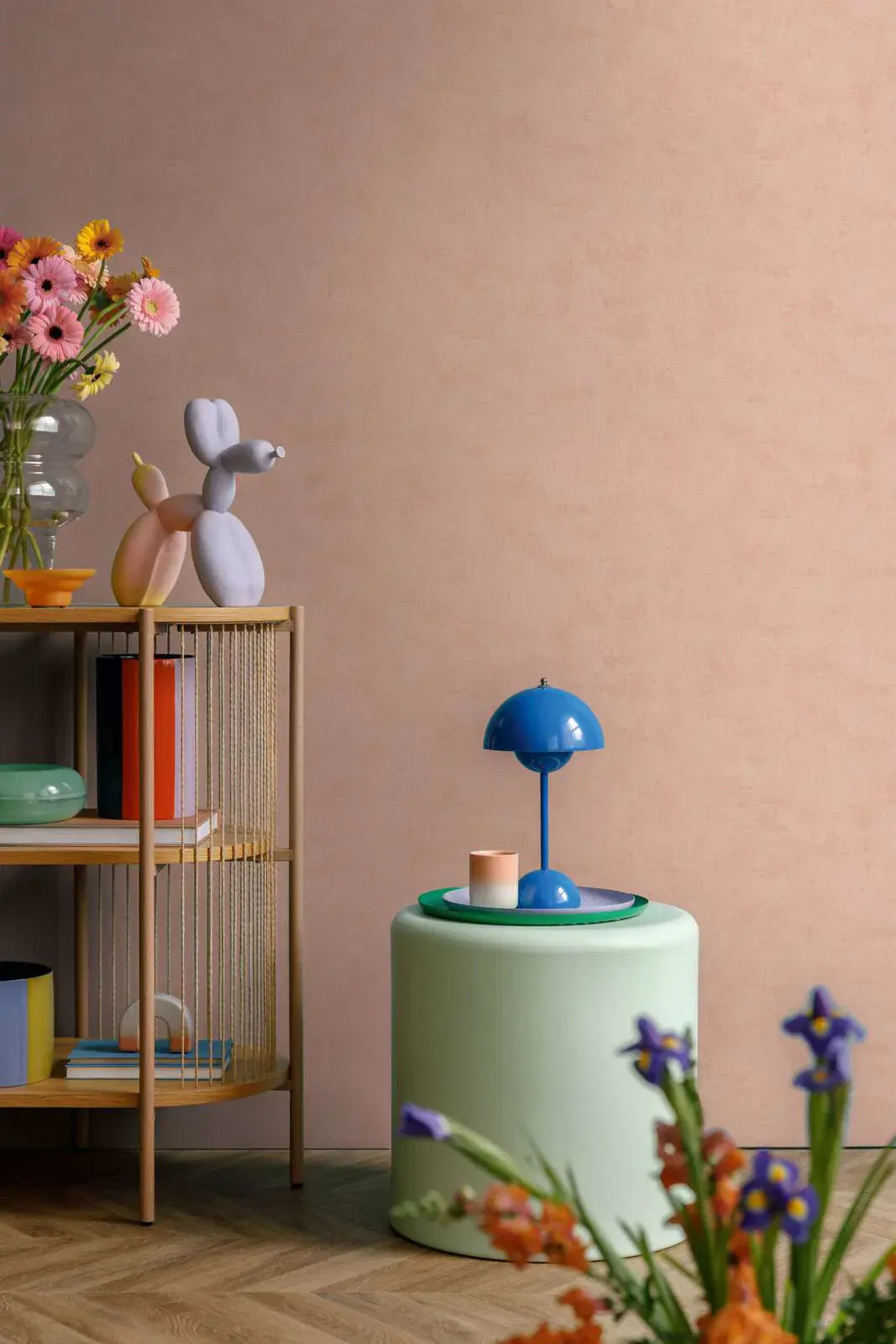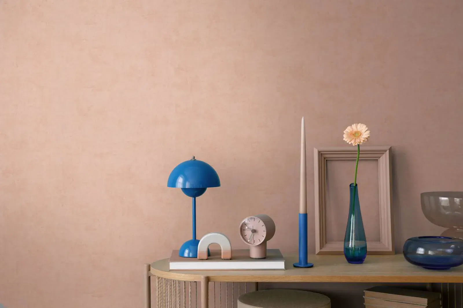 Tapetes motīvs ir izsmalcināts, teksturēts virsmas apdare maigā rozā krāsā. Smalki vertikāli līnijas vienmērīgi stiepjas pāri visai virsmai, radot izsmalcinātu tekstūru, kas atgādina dabīga lina izskatu. Krāsu gamma sastāv no dažādiem maigu rozā un siltu pasteļtoņu nokrāsām, kas harmoniski savienojas un rada nedaudz miglātu vai plankumainu efektu. Motīvs telpai piešķir mierīgu, draudzīgu atmosfēru un, pateicoties savai neuzkrītošajai izskatībai, rada mūžīgu, elegantu efektu ar nedaudz skandināvu noskaņu. Ideāli piemērots gaišām telpām, kurām nepieciešams mājīgs, bet moderns izskats.