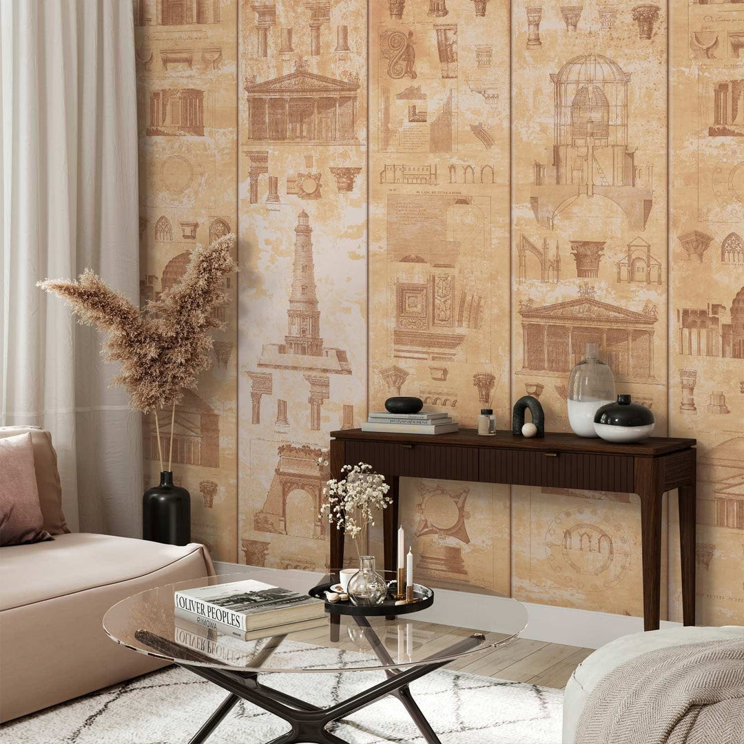 Tapetes ar retro dizainu un arhitektūru bēšos toņos, 93207