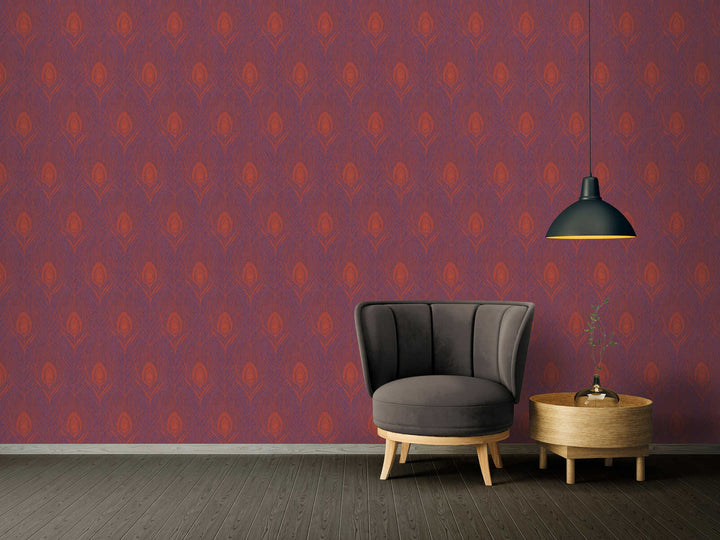 * Purpurā tapetes ar pāvu spalvām 1322063