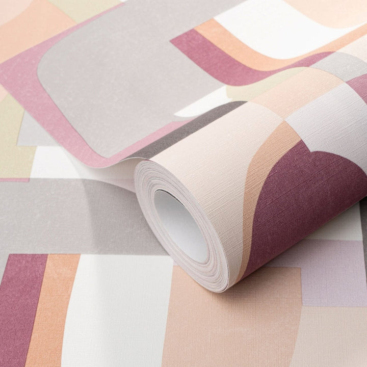Tapetes ar ģeometrisku rakstu (pelēka, violeta, persiku krāsa) - 3765406