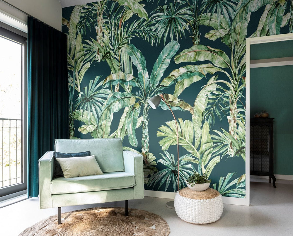 Tapetes ar eksotiskām lapām zaļā krāsā, RASCH 2477342
