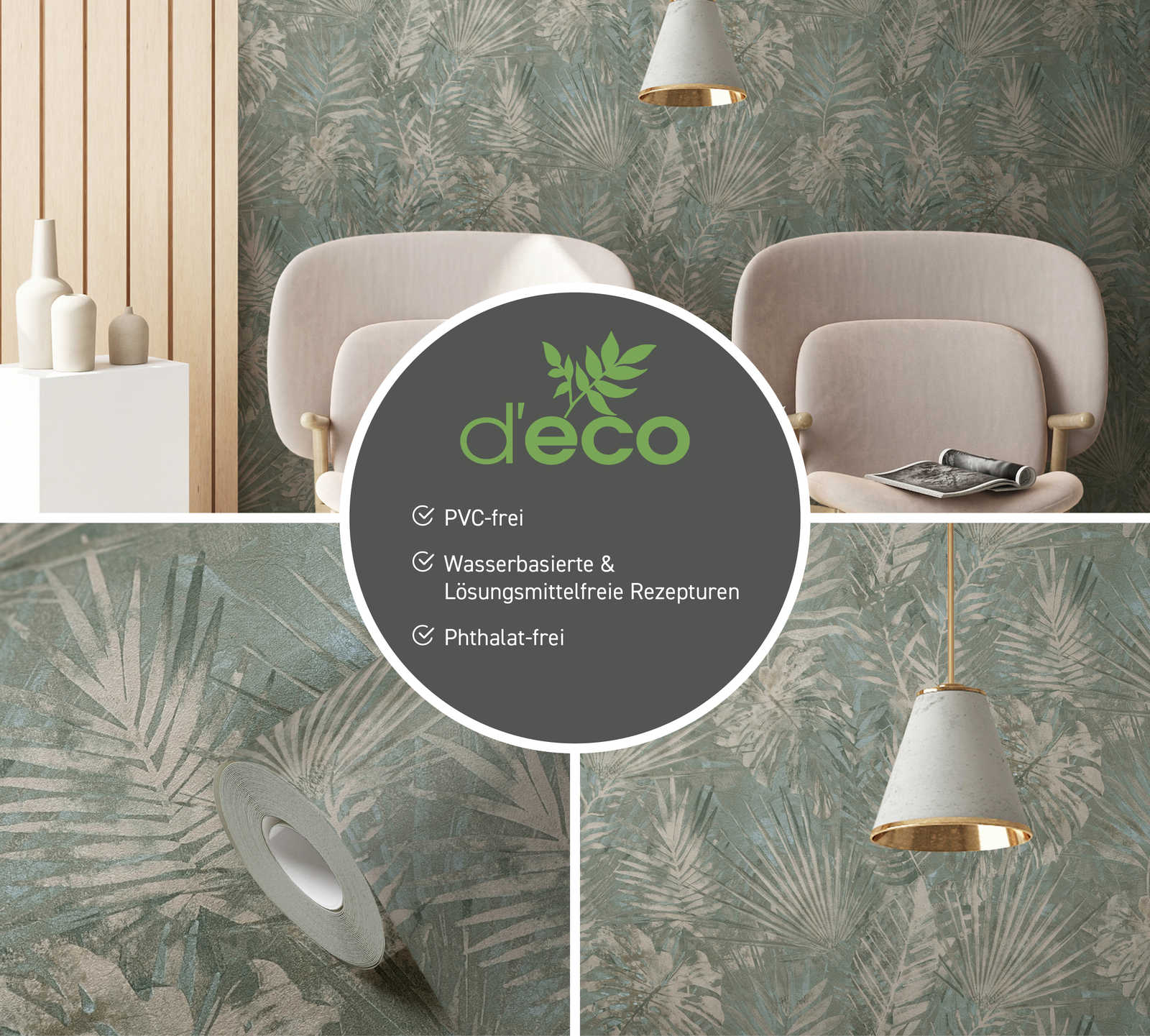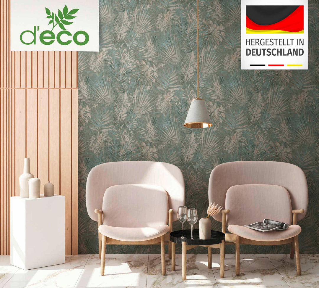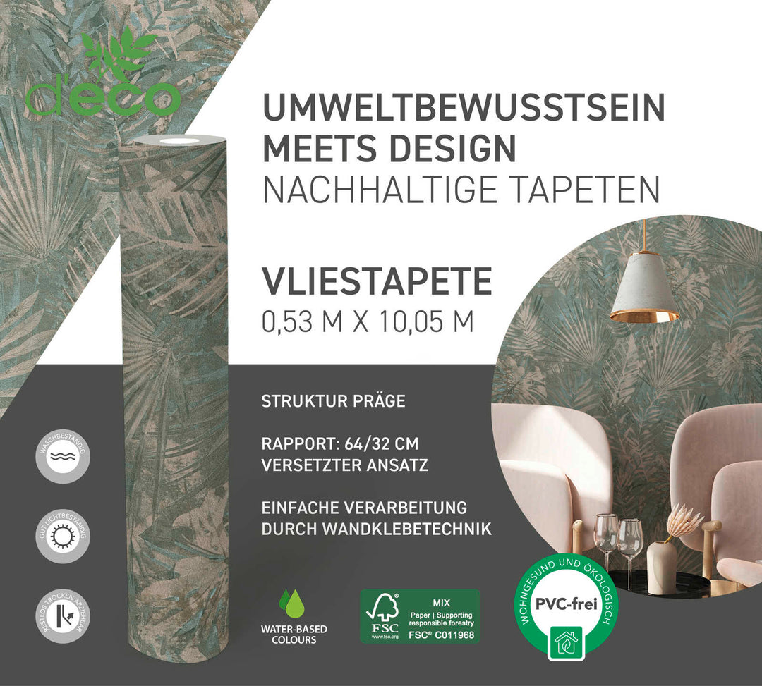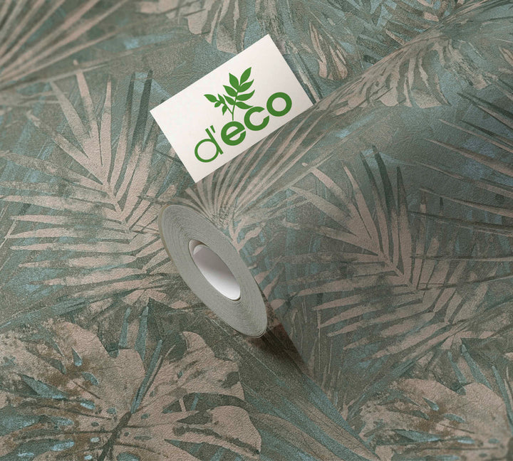 Ekoloģiskas tapetes ar džungļu lapām, bez PVH, tumši zaļā - 1362516, 🔖