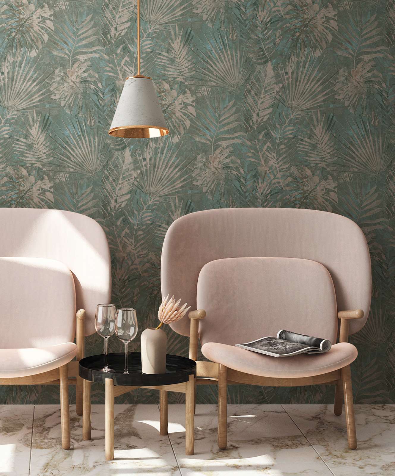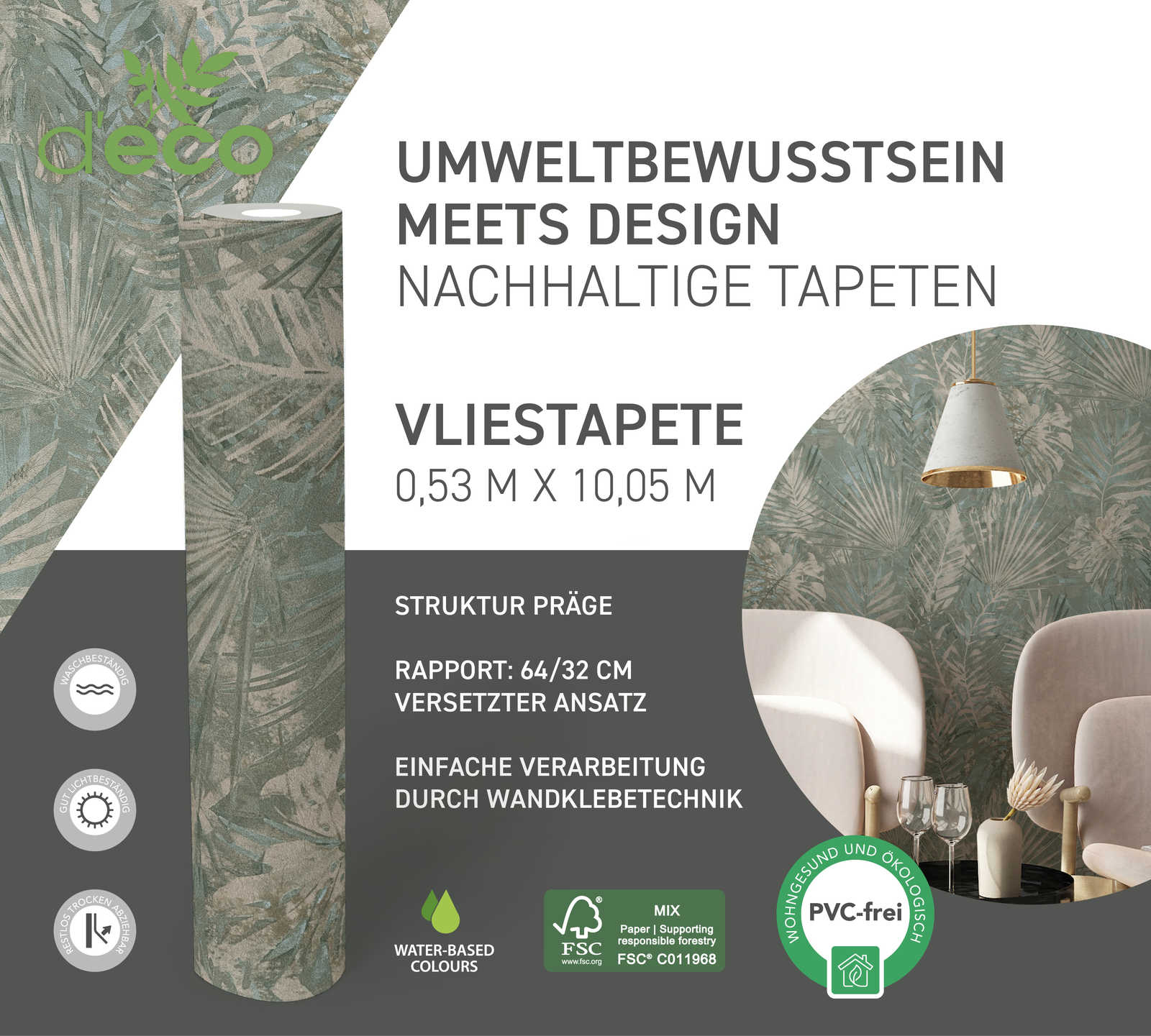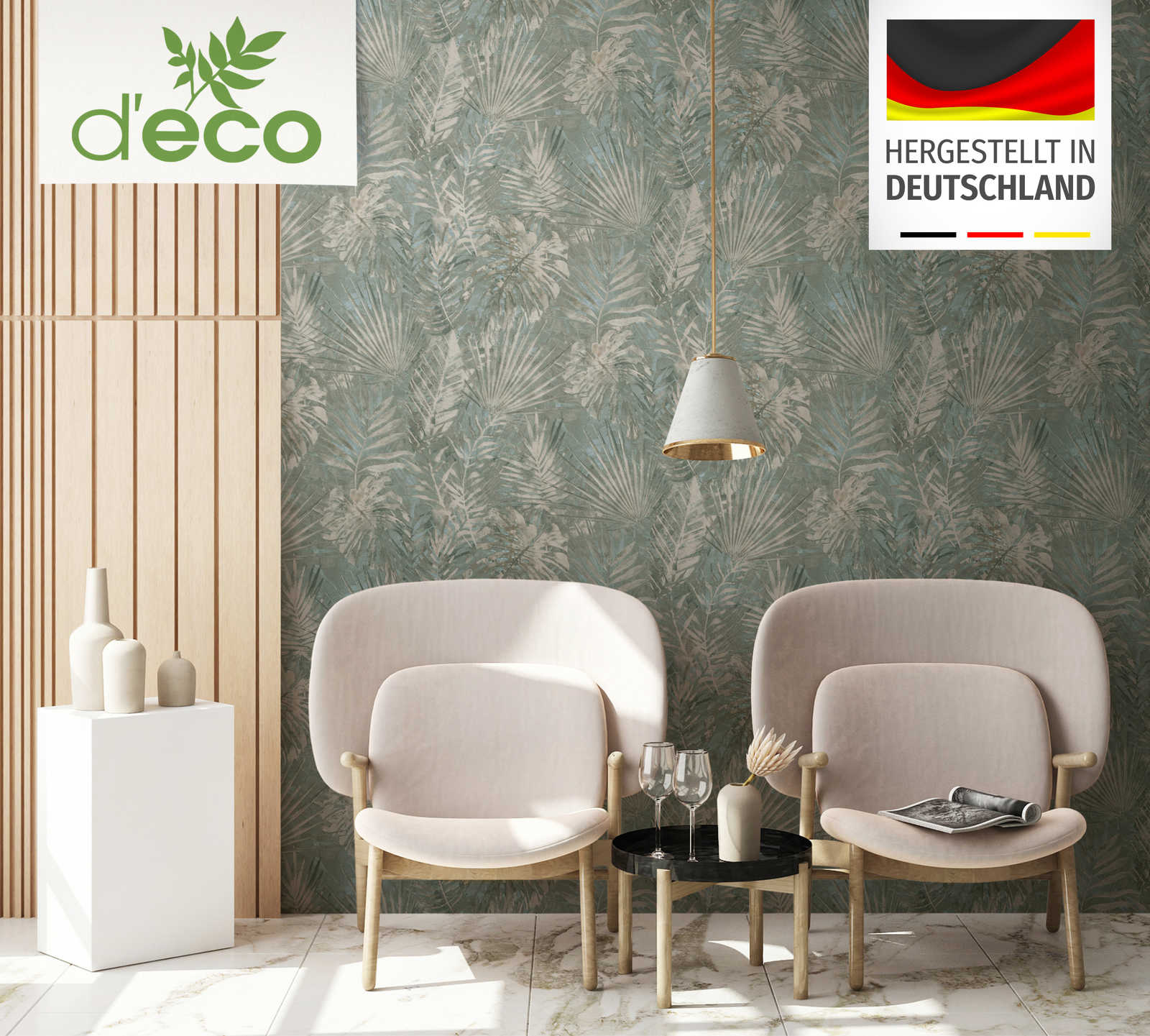 Ekoloģiskas tapetes ar džungļu lapām, bez PVH, tumši zaļā - 1362516, 🔖