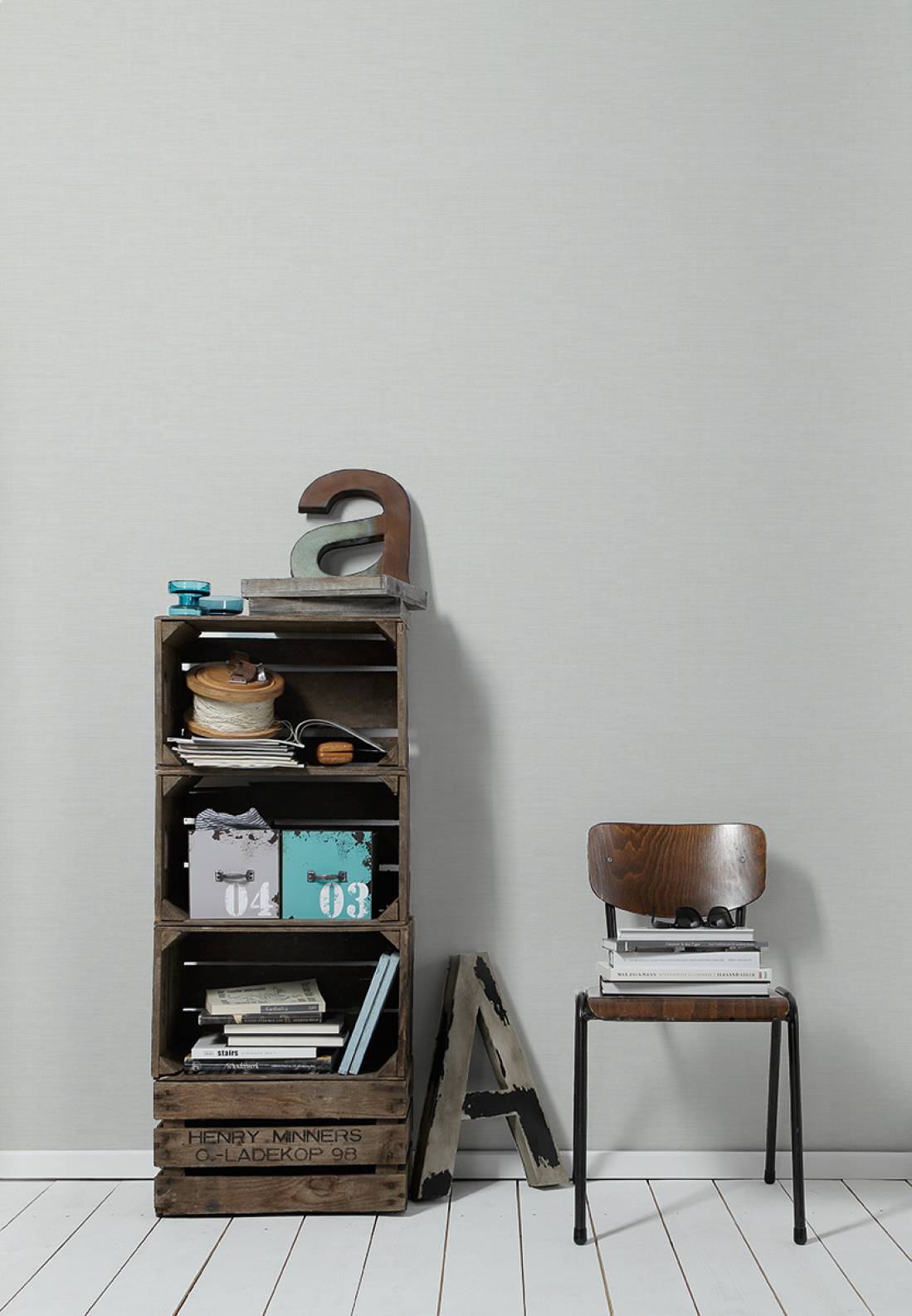 Tapetes ar retro struktūru un tekstila efektu, gaiši pelēkā krāsā - 1247112