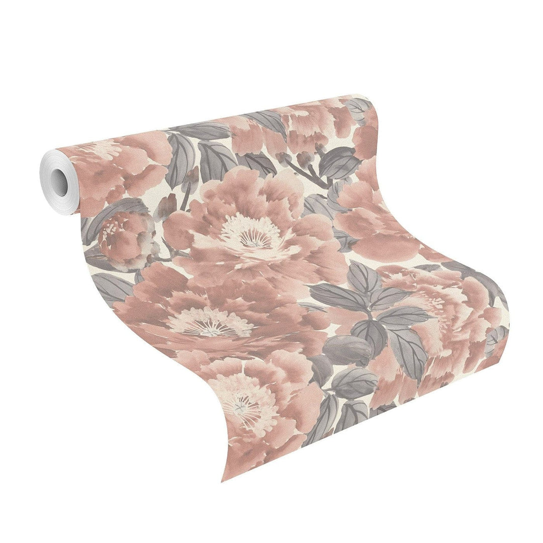 Pilnā ziedēšanas laikā uz krēmīgi baltas pūkainas tapetes izstiepjas iespaidīgi ziedi gaiši sarkanbrūnā krāsā, ko ieskauj pelēkas lapas. Acīs paveras dzīvīga dabas izrāde, kas uz jūsu sienas ir enerģijas un spēka pilna. Tas nozīmē, ka jūsu telpas var patiešām uzplaukt.