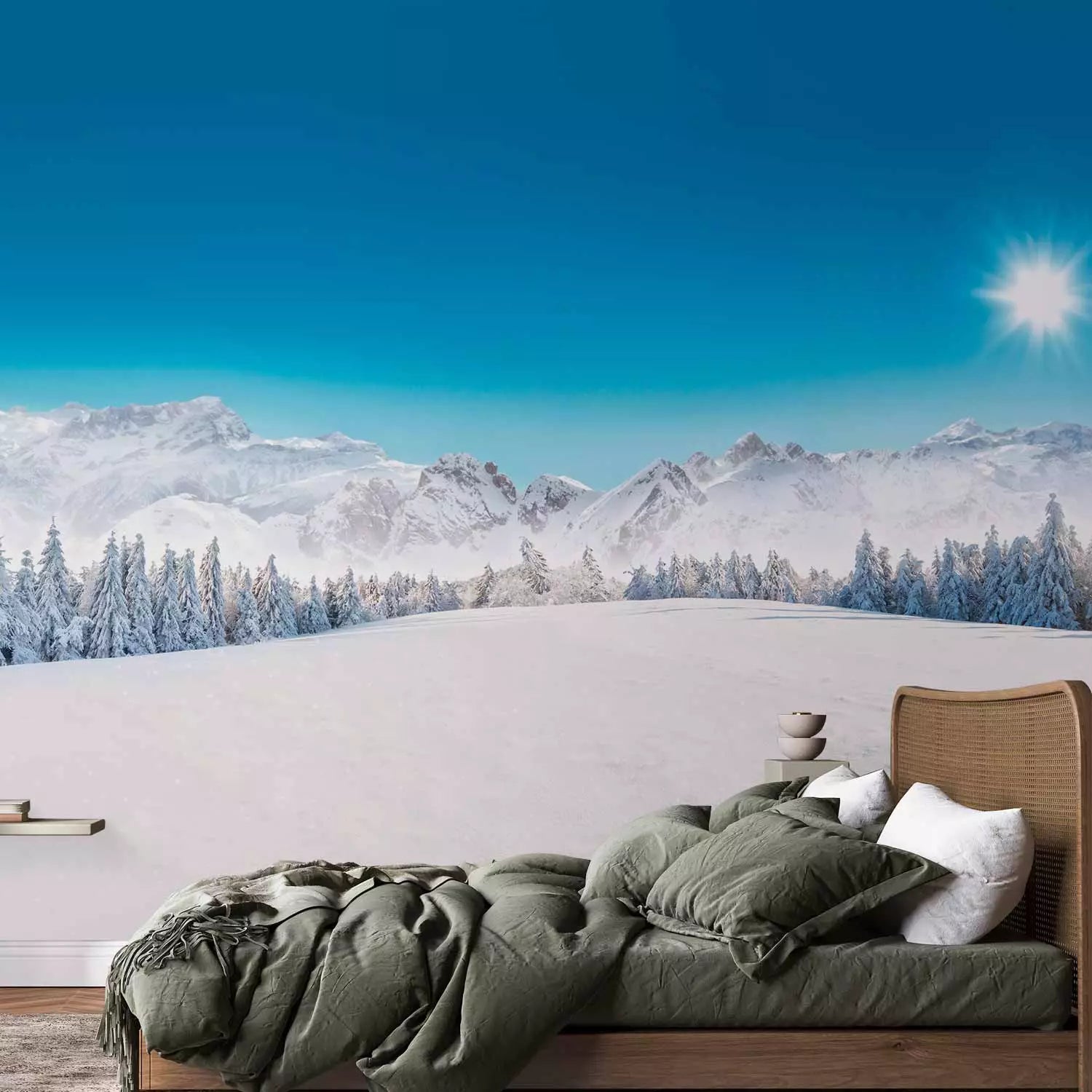 Fototapetes - Kalnu virsotnes un meži, pārklāti ar sniegu, 151866