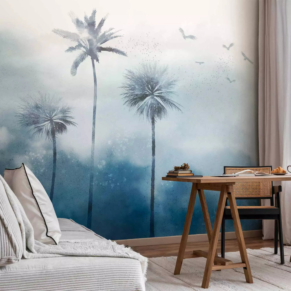 Fototapetes ar putniem virs diviem skaistiem kokiem - labākā izvele G-ART