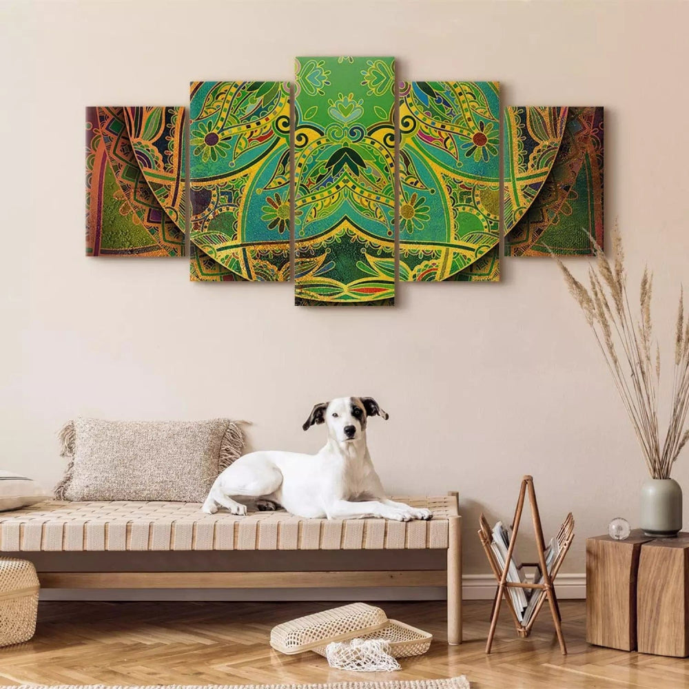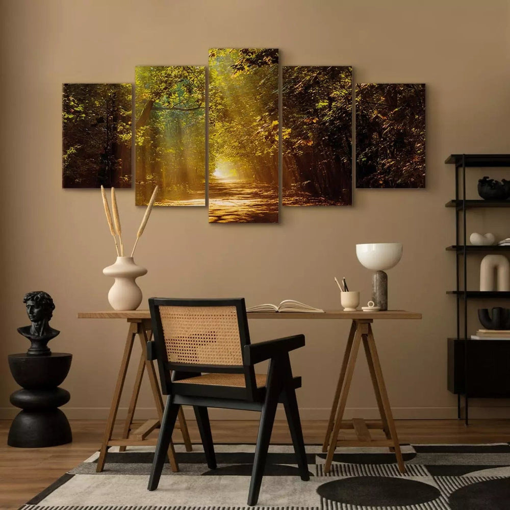 Ar gleznām zaļā krāsā piepildiet sienas ar organisku enerģiju. Ideāli piemērotas mājas birojiem vai mācību telpām, veicinot mierīgu un koncentrētu atmosfēru.