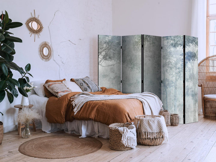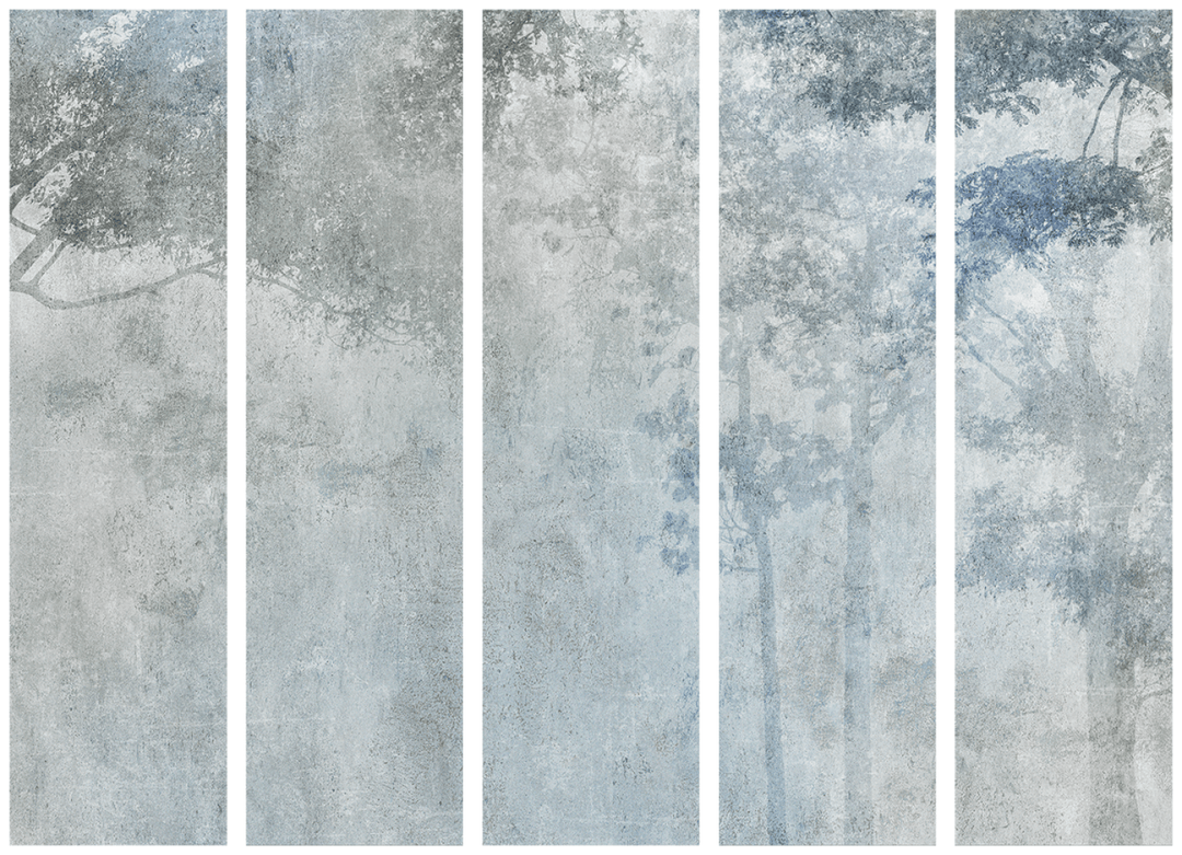 Aizslietnis - Koki miglā - ainava zilos un pelēkos toņos, 150988, 225x172 cm