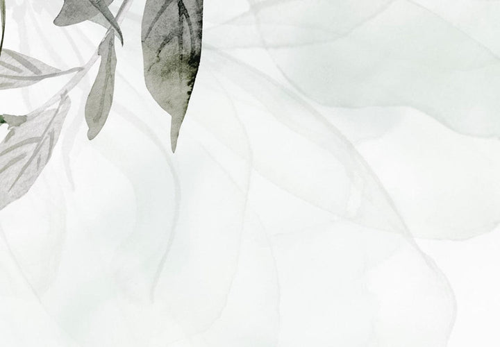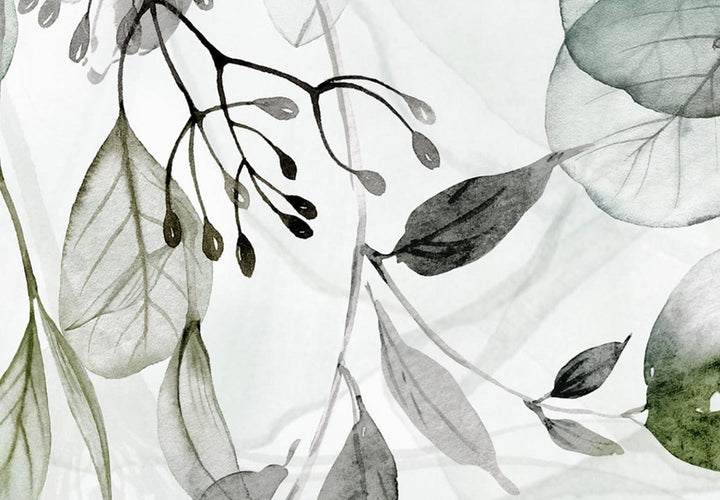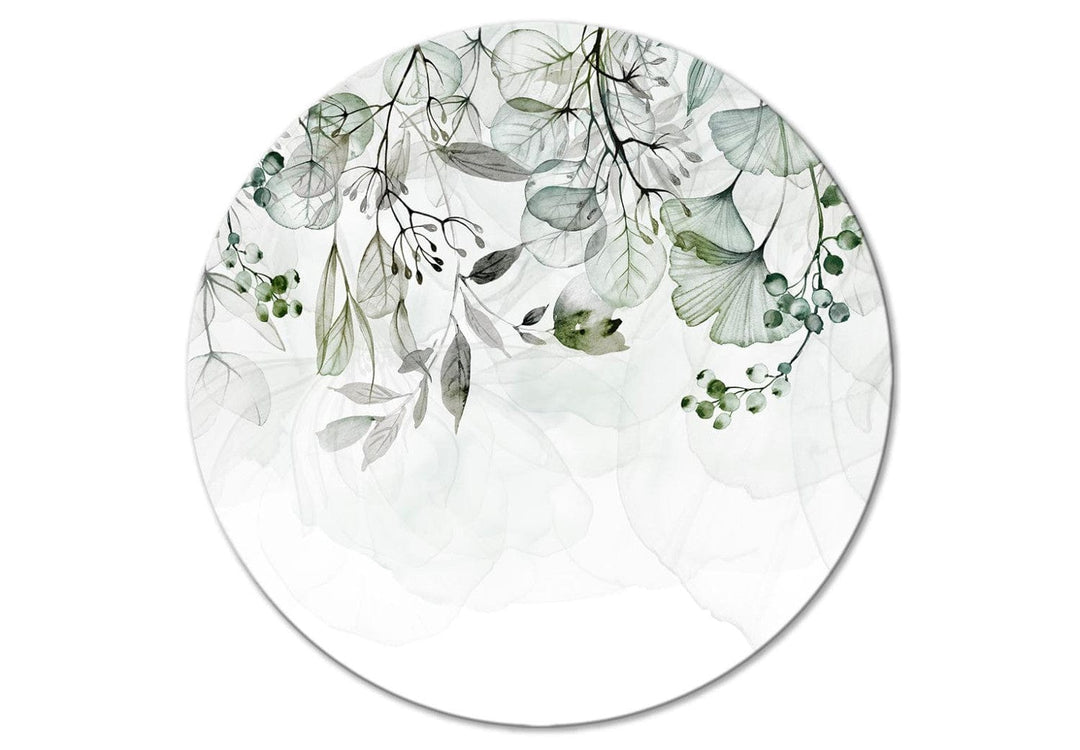 Apaļa kanva - Zaļās lapas un ziedi uz gaiša fona, 151513