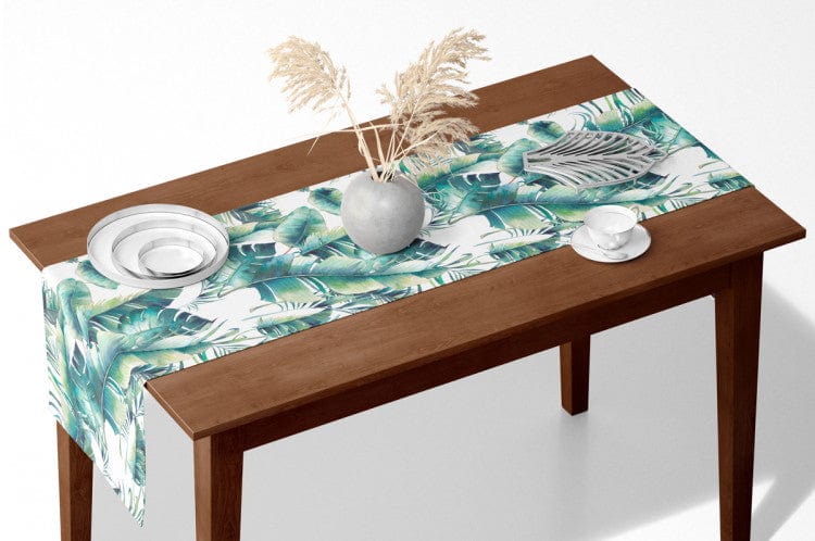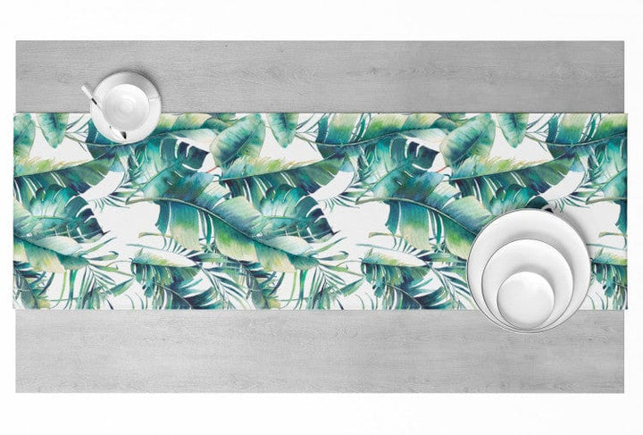 Galda celiņš - Tropiska flora akvareļu stilā uz balta fona, 147223