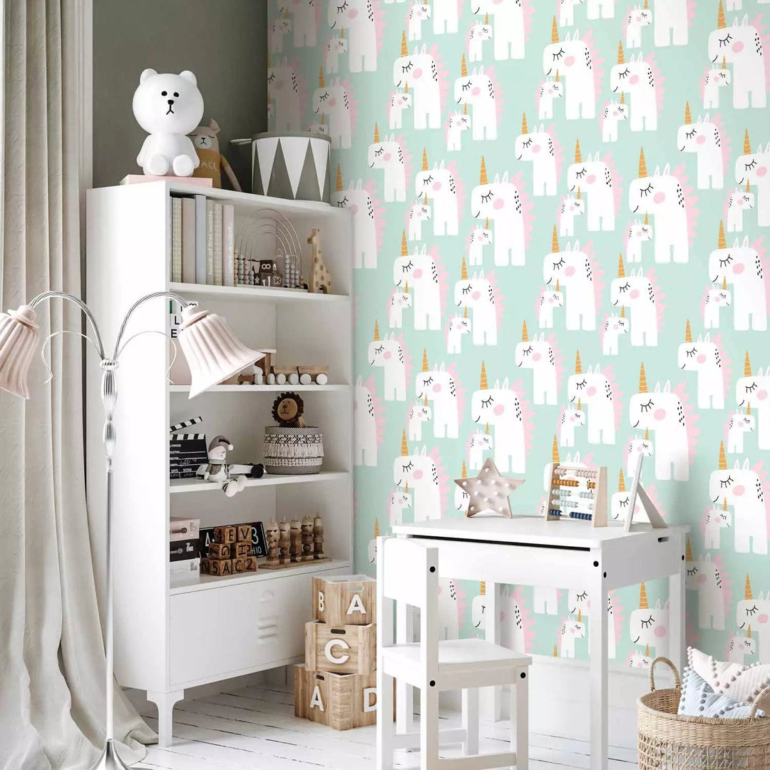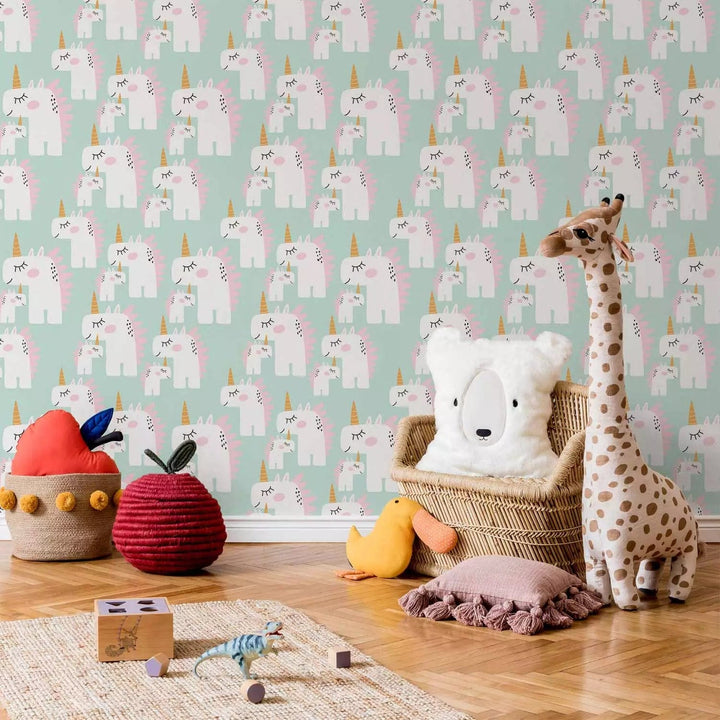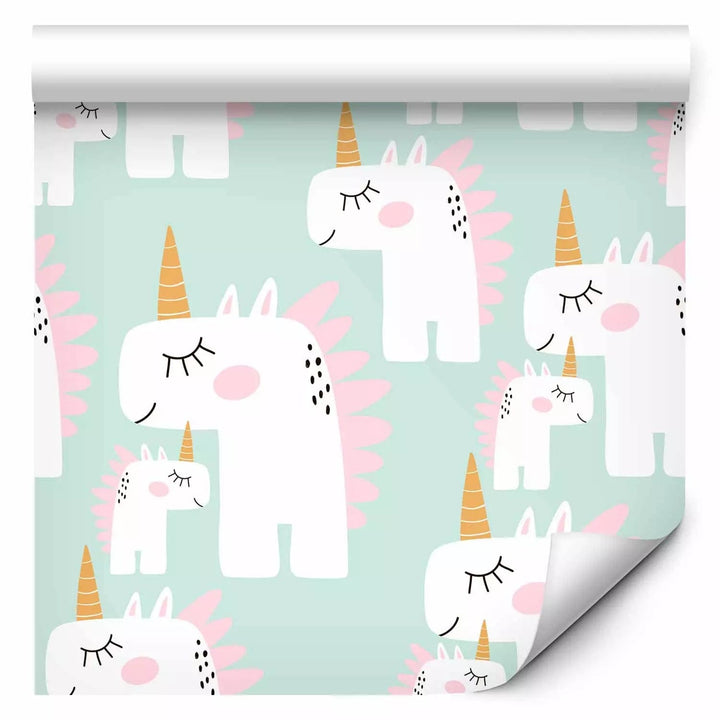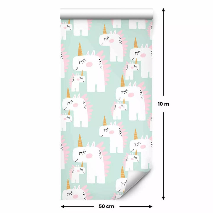 Tapetes bērnu istabai - Vienradži uz zaļa fona, 108066, 0,5x10m
