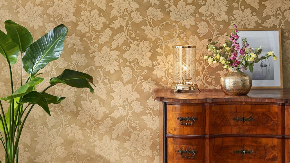 FLOCK tapetes ar Damaska rakstu - zeltā krāsā, 1124442