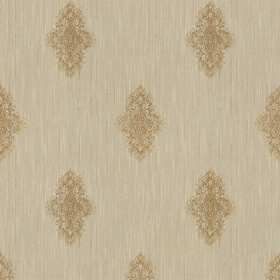 Klasiskas tapetes ar zelta rakstu uz bēša fona AS 37901-3 AS Creation