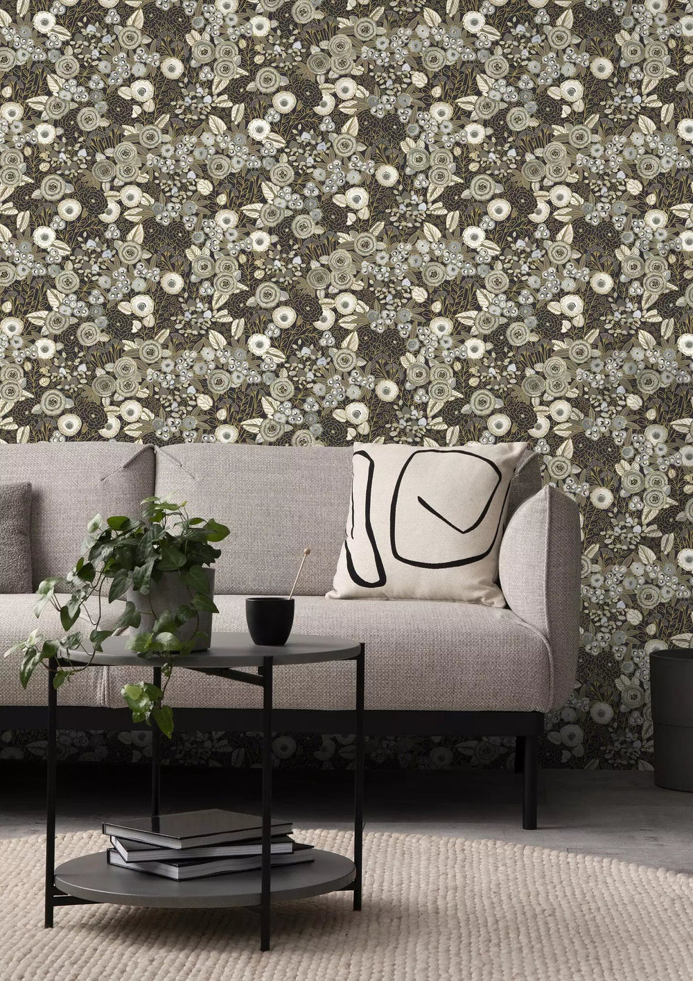 Tapetes ar ziediem un lapām: pelēka, brūna, zelta, RASCH, 538229 RASCH
