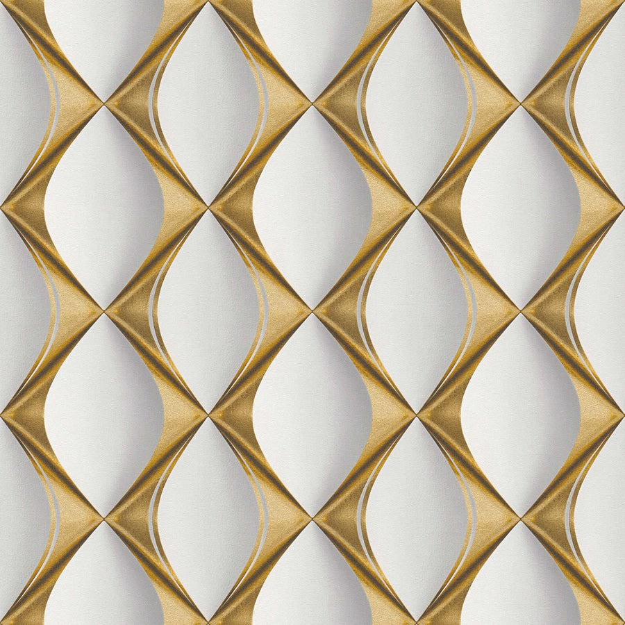Grafiskas tapetes ar 3D rakstu pelēkā un zeltā krāsā, 1363537 AS Creation