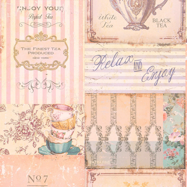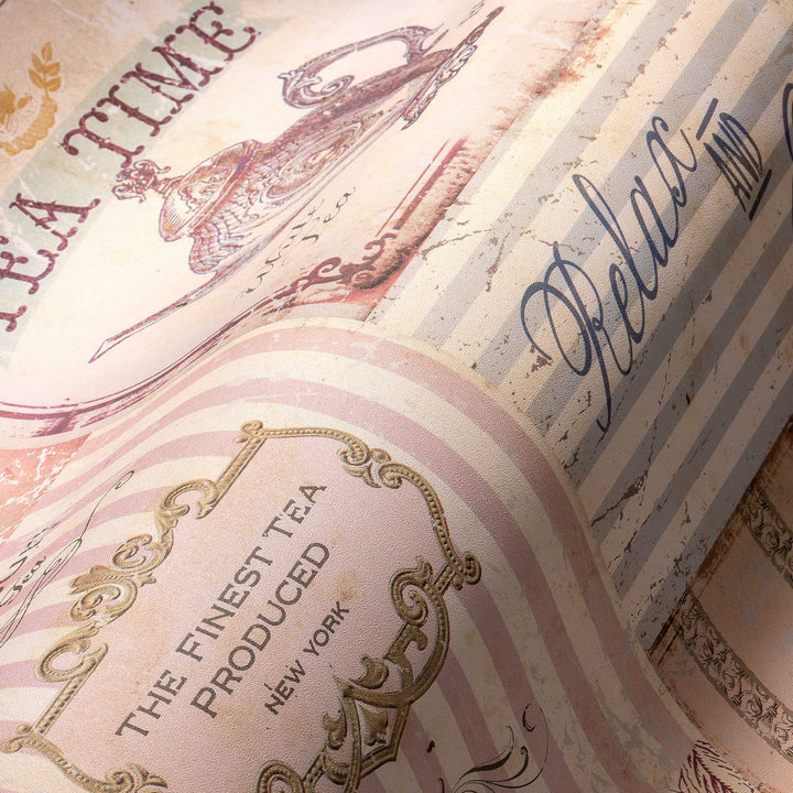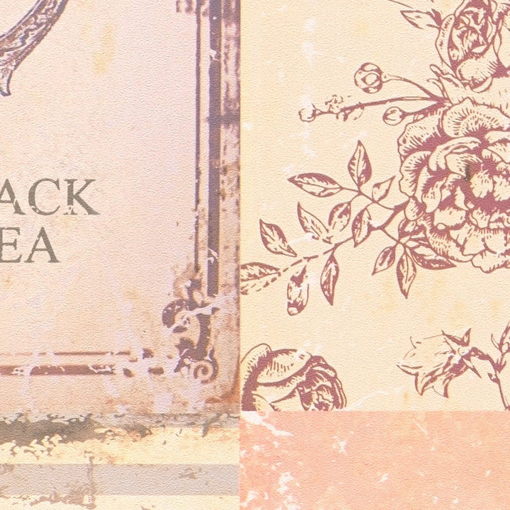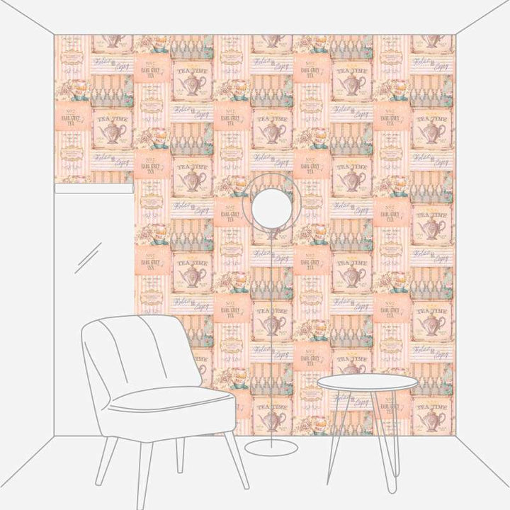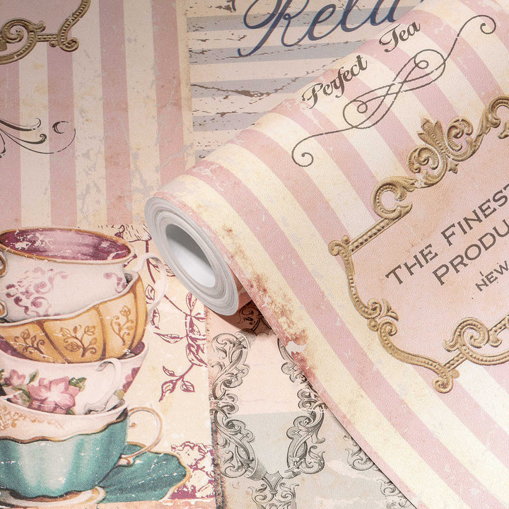 Tapetes ar tējas tematiku vintāžas stilā - rozā krāsā, 1364307