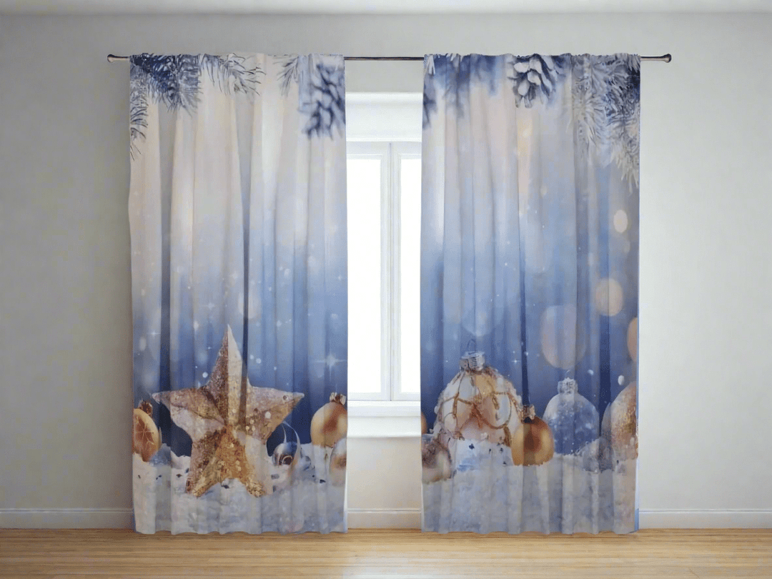 Ziemassvētku aizkari - Zelta zvaigzne uz sniega