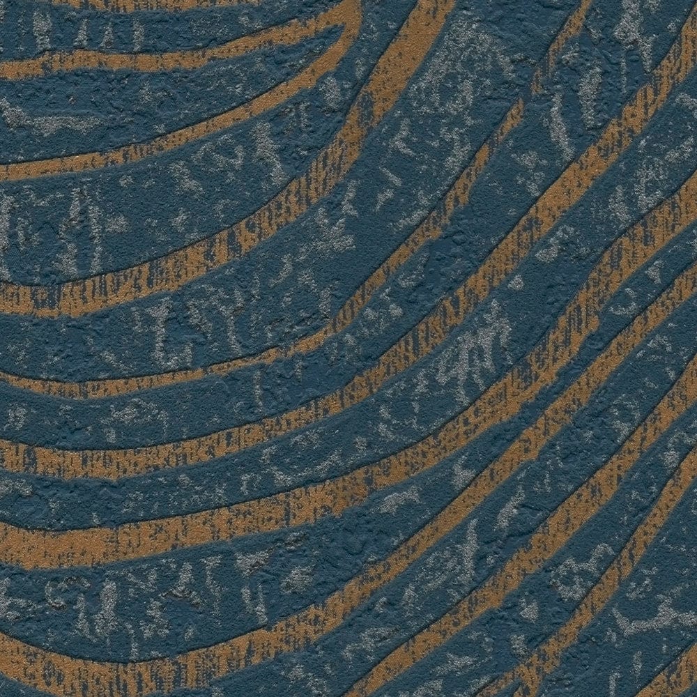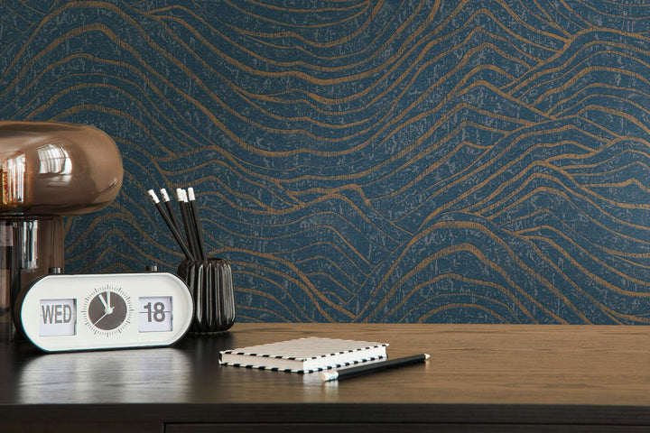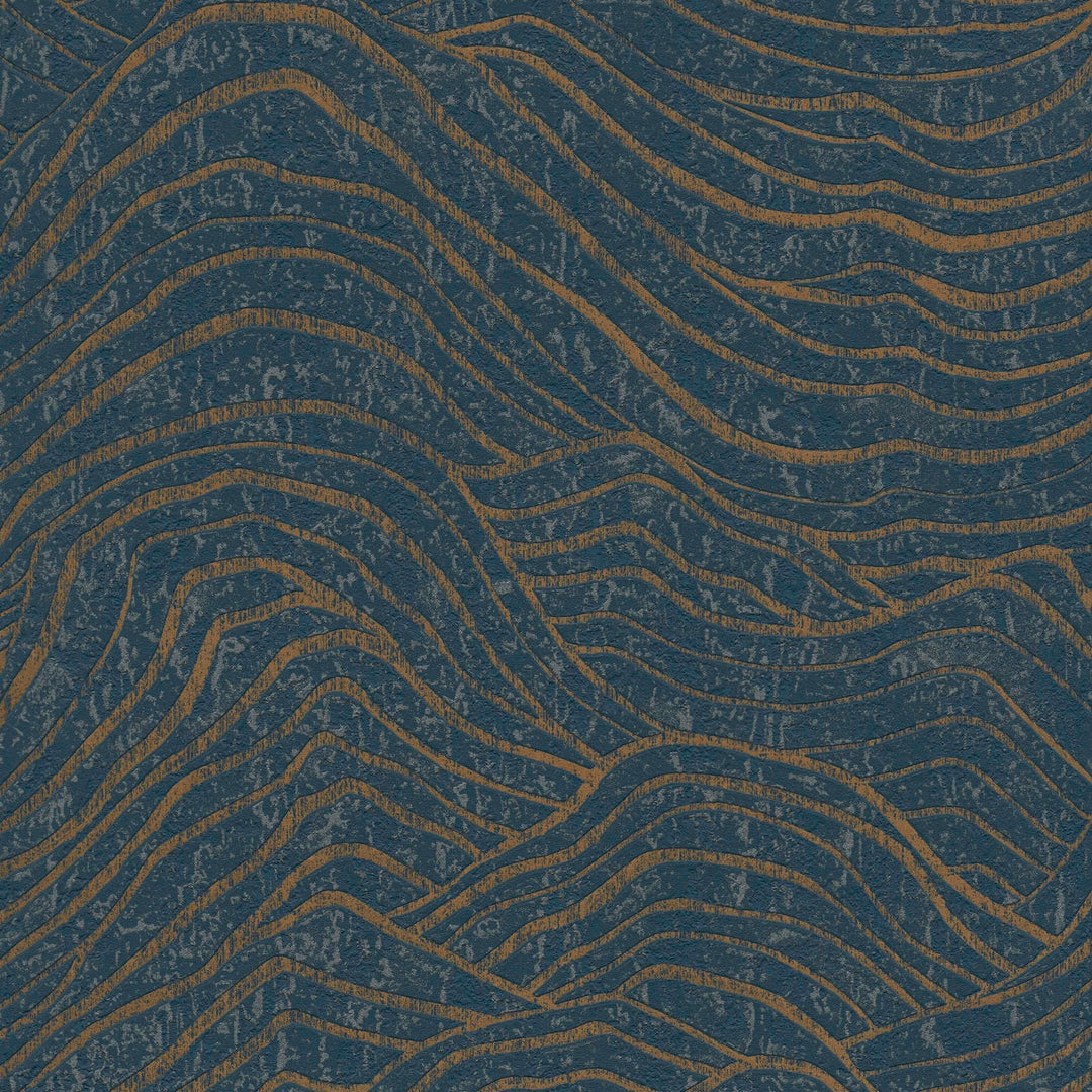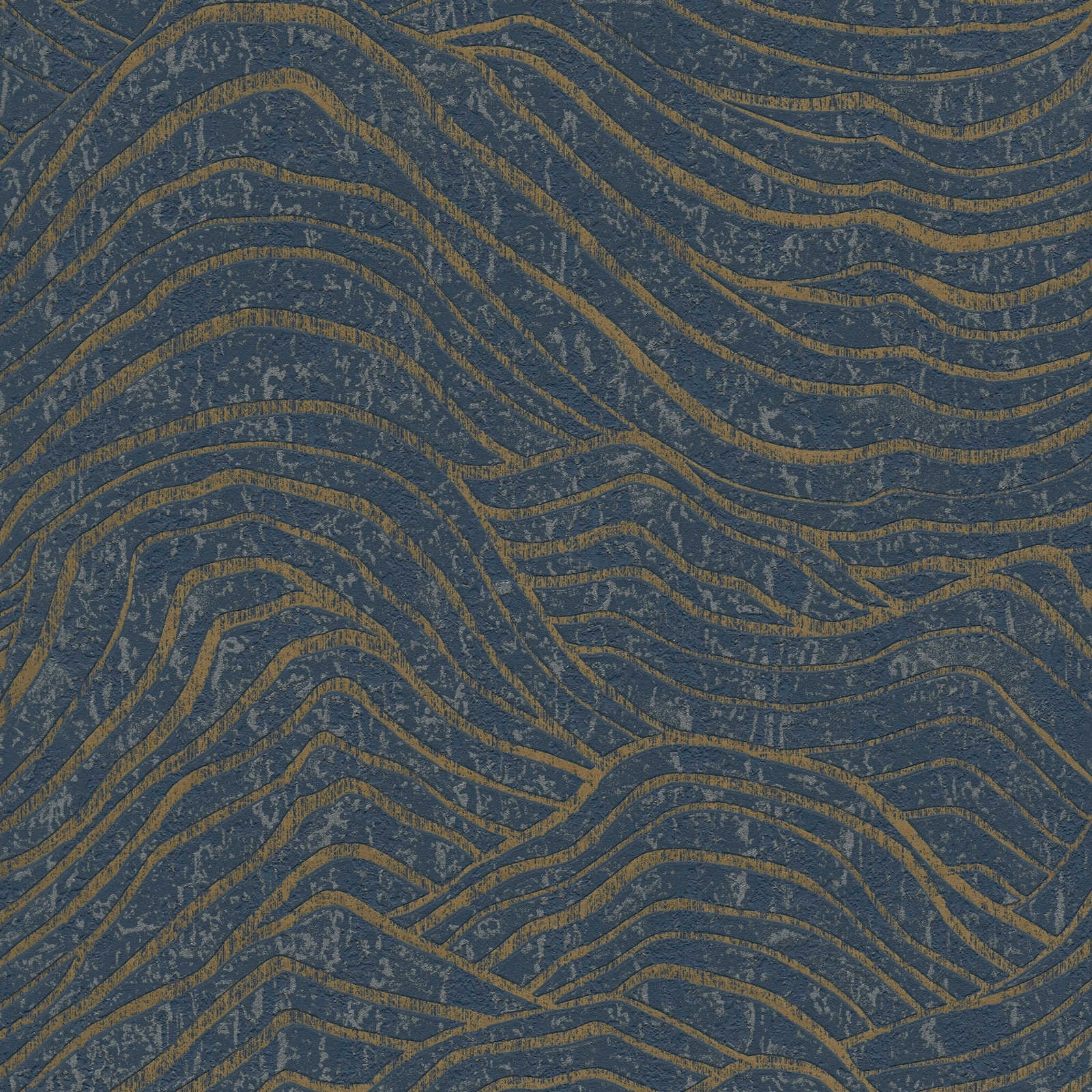 Abstraktās tapetes ar kalna rakstu tumši zilā un zeltā krāsā, 1403502