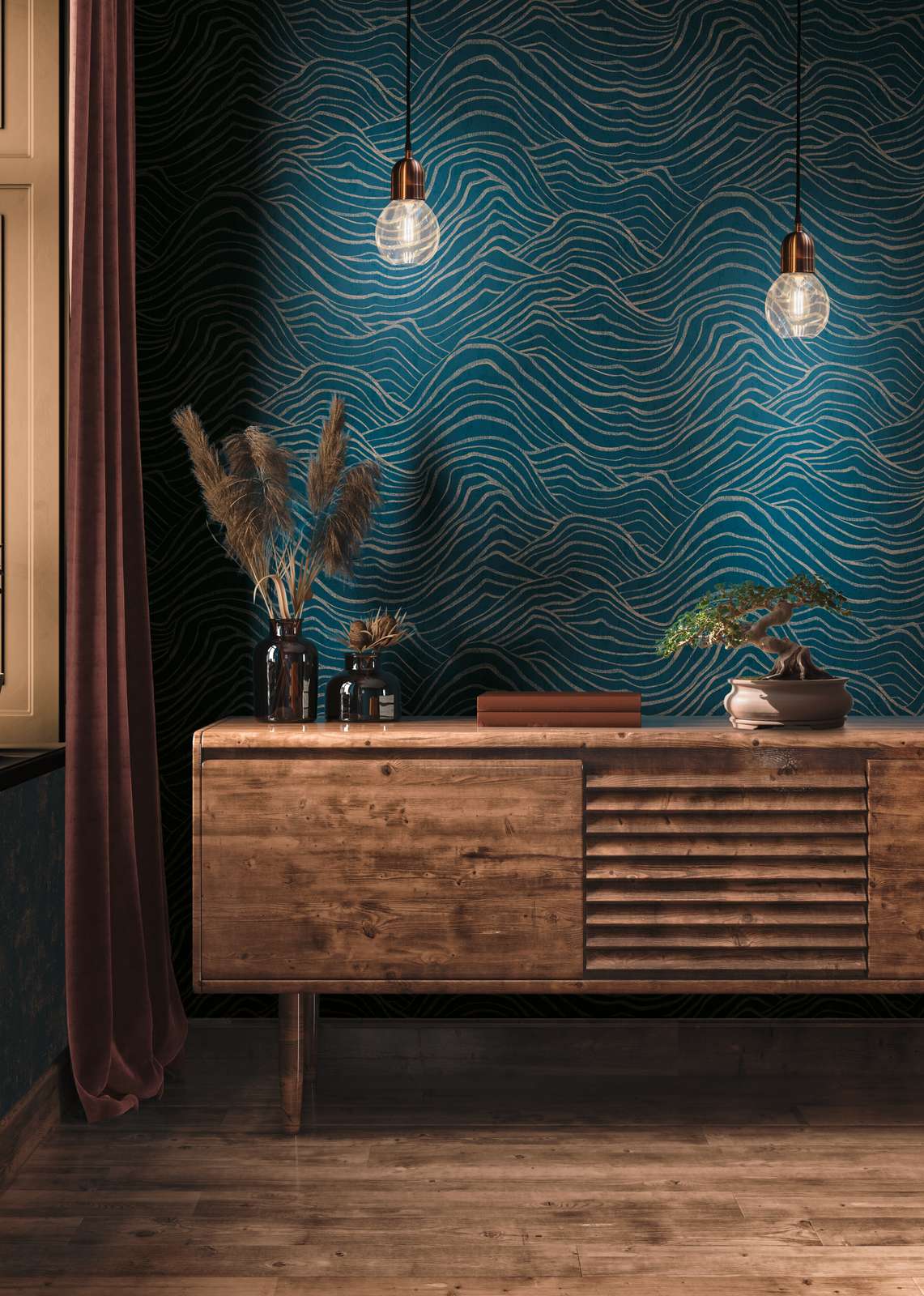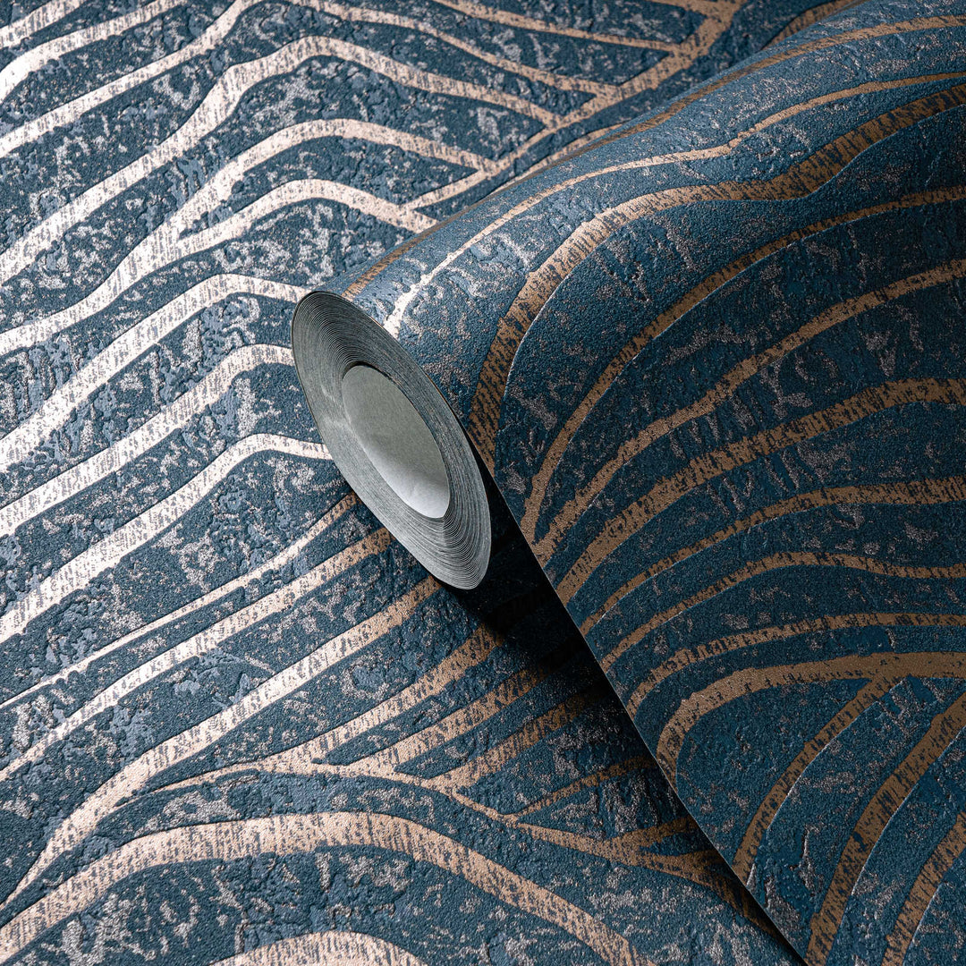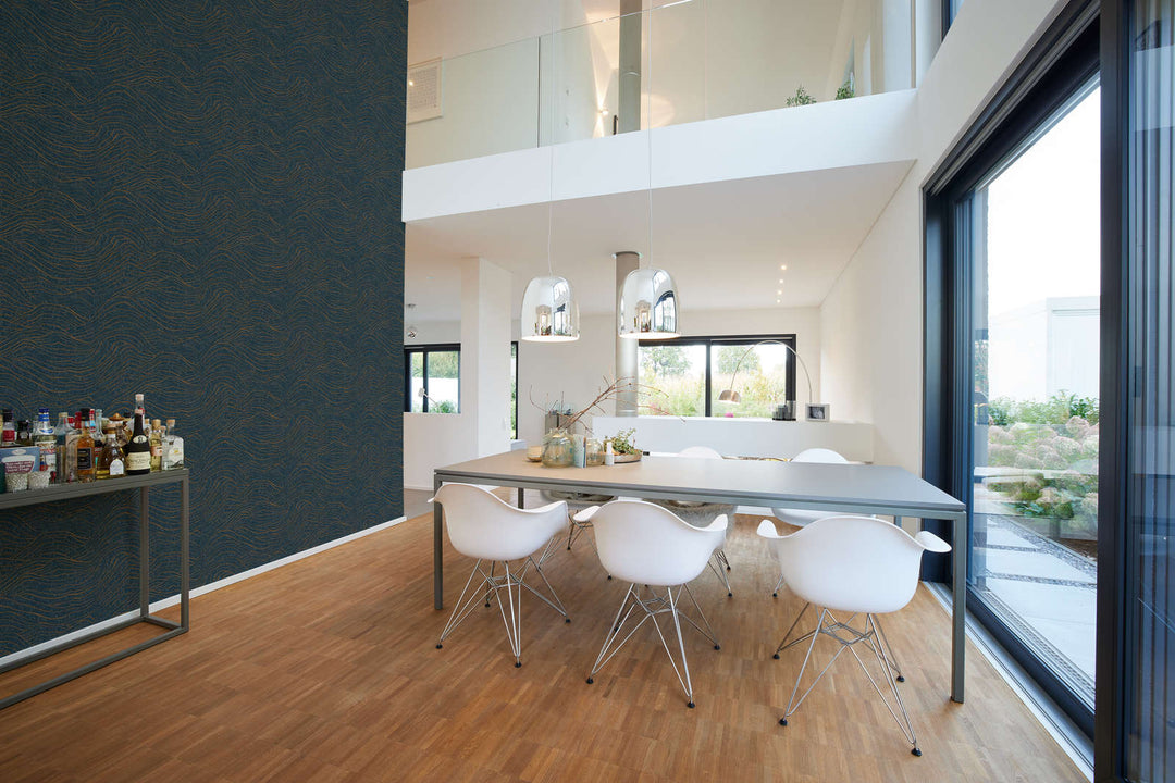 Abstraktās tapetes ar kalna rakstu tumši zilā un zeltā krāsā, 1403502