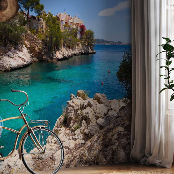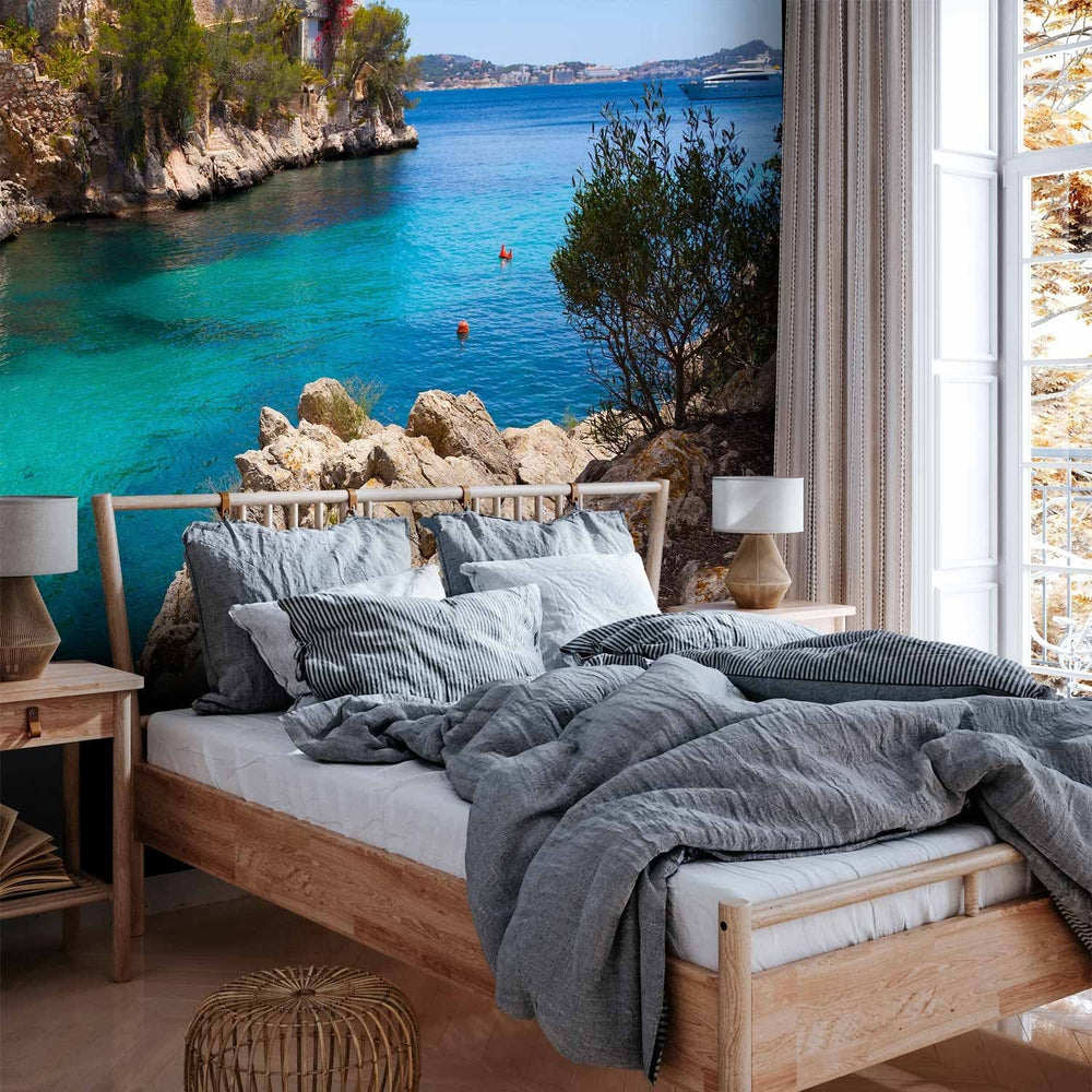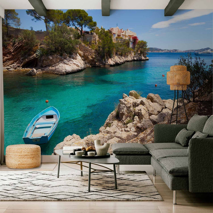 Fototapetes - Spilgta ainava ar klinšainu līci un laivu, 61676