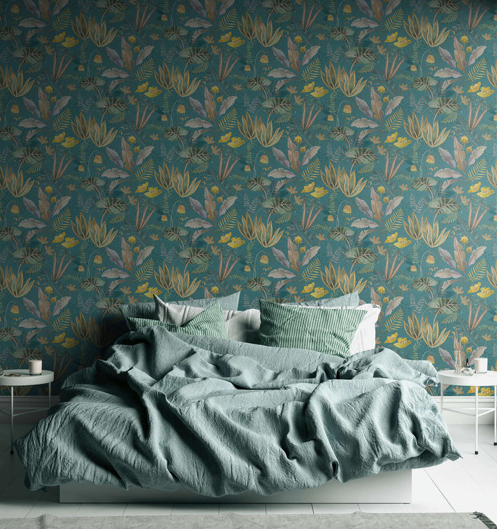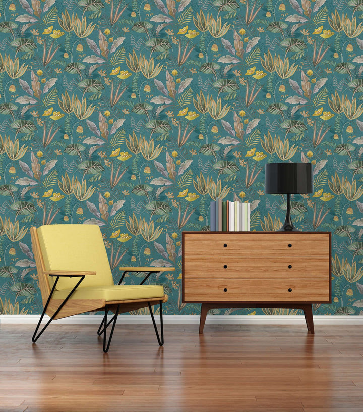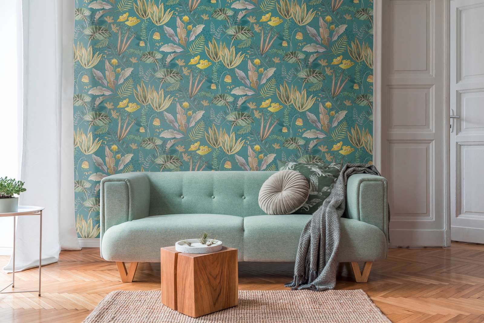 Tapetes ar dažādām lapām: zila, zaļa, dzeltena, 1400413