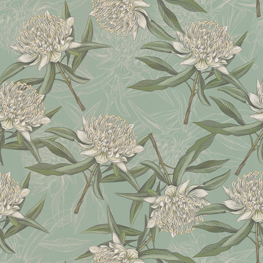 Wallpaper with flowers and leaves: green, 1402122