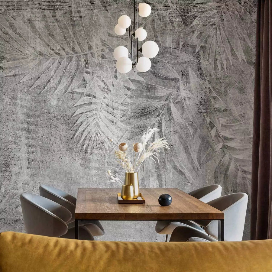Fototapetes ar palmu lapām pelēkos toņos - pasūtīt fototapetes G-ART