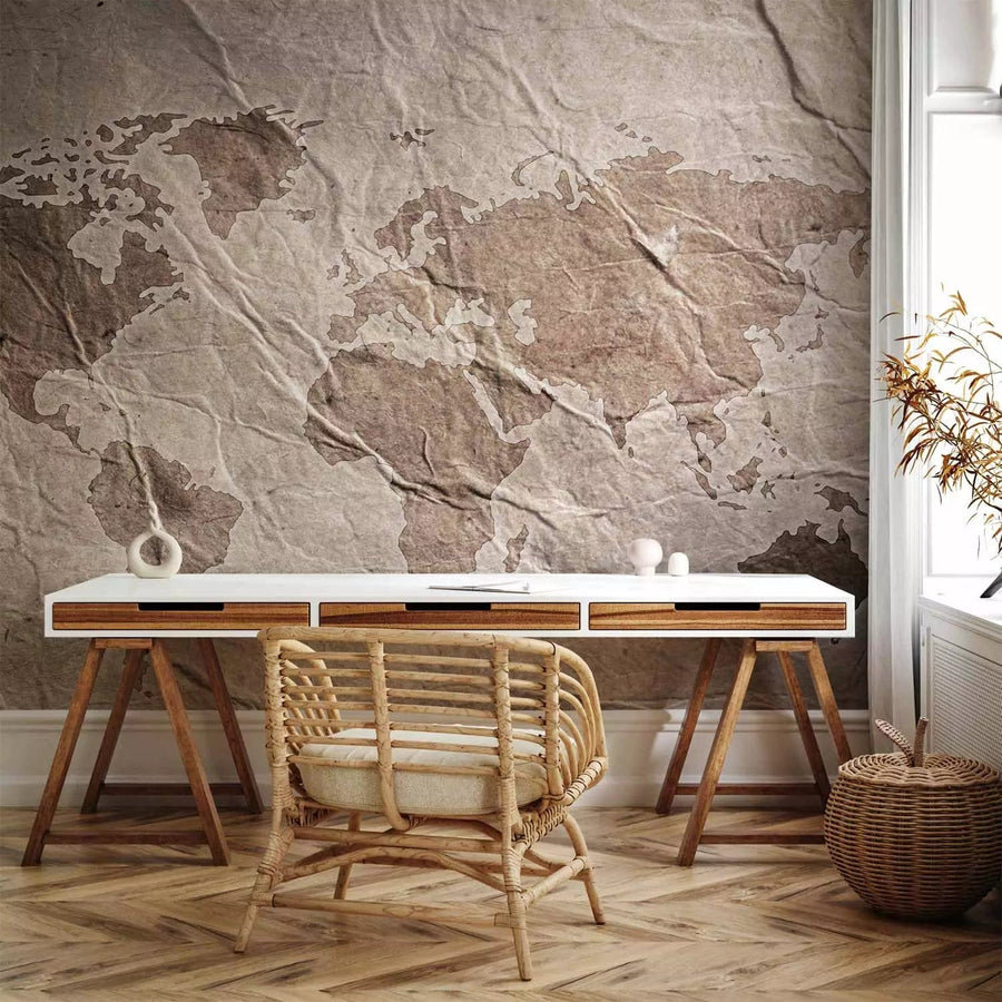 Fototapetes - Moderna pasaules karte brūnā krāsā, 97071 G-ART