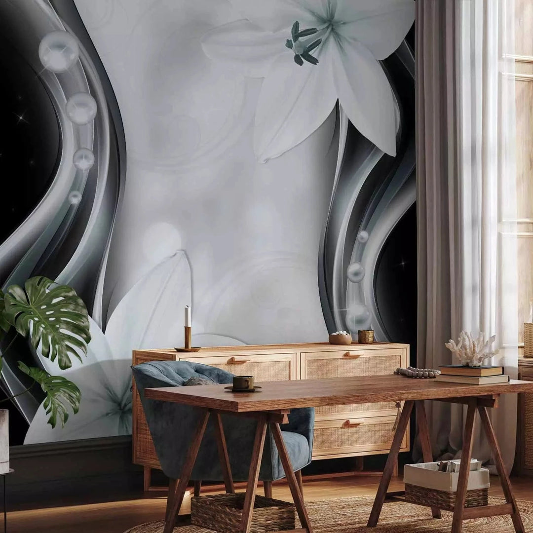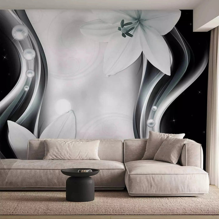 Wall Murals (black and white with flowers) - Cosmic Lilies, 63836