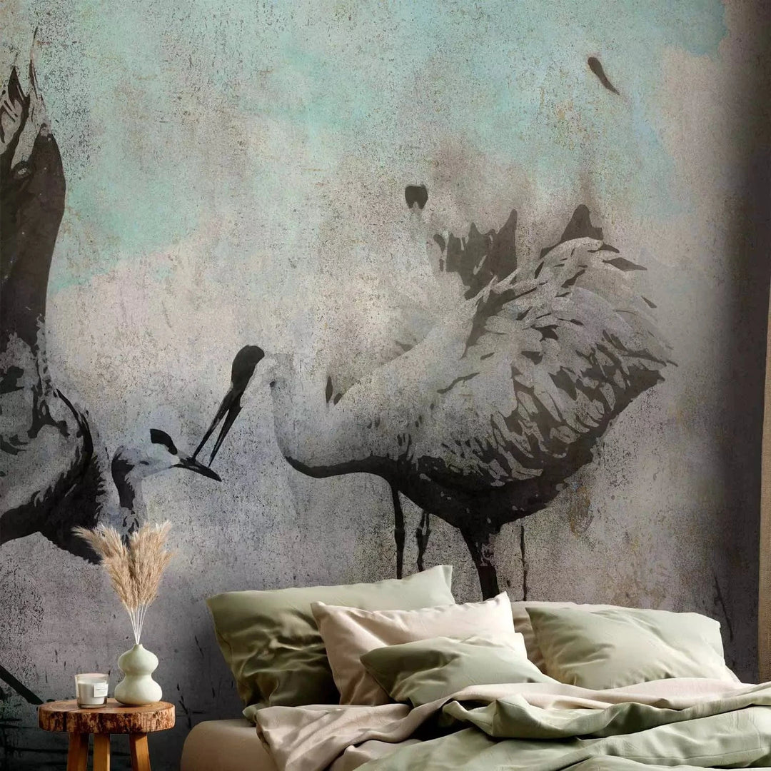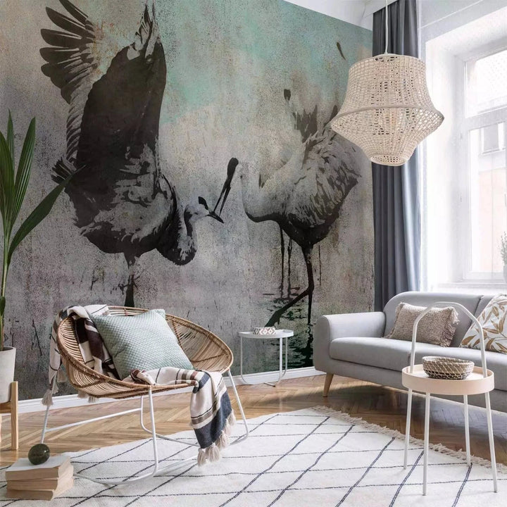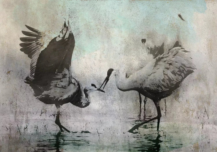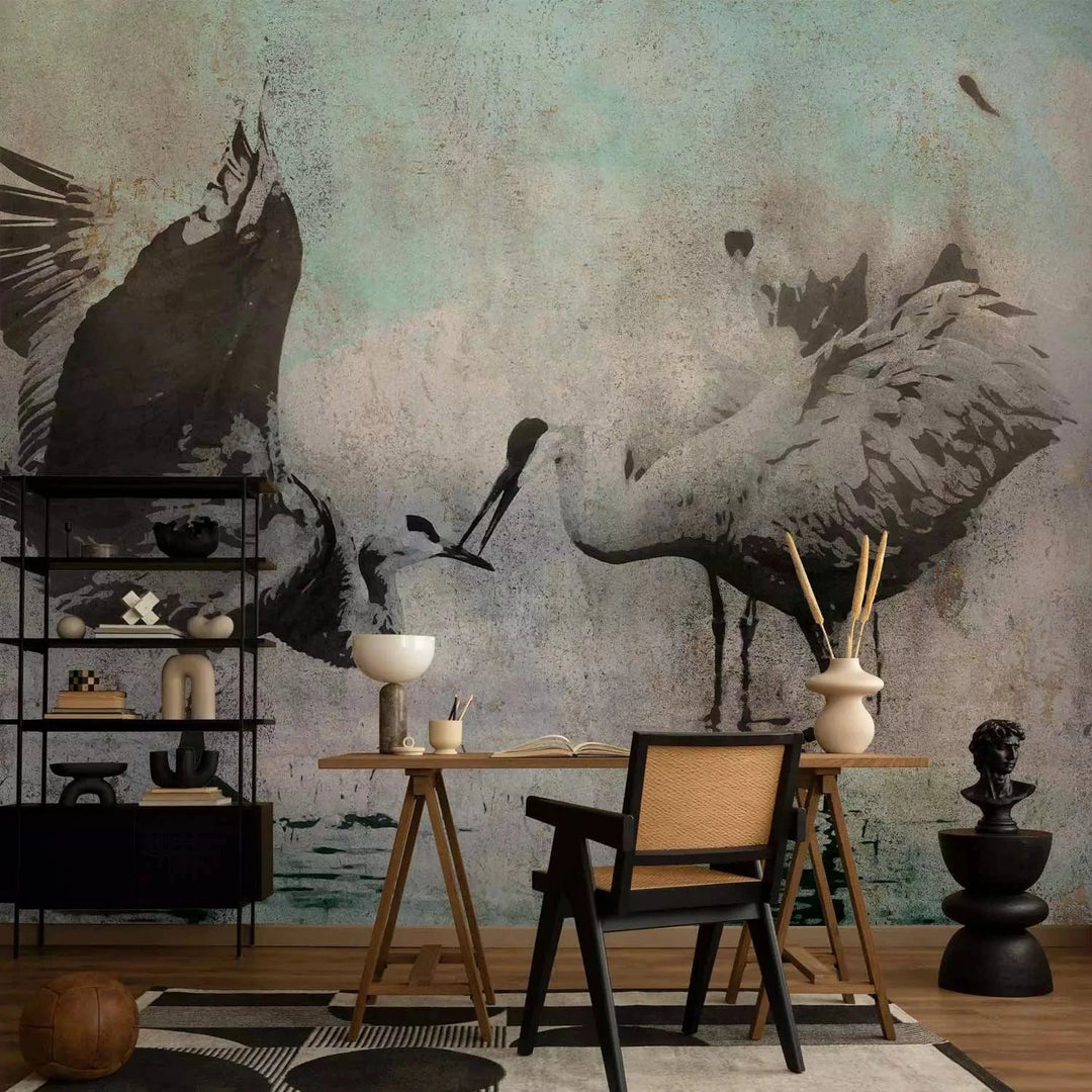 Wall Murals - Crane dance - composition with birds on grey background, 138841